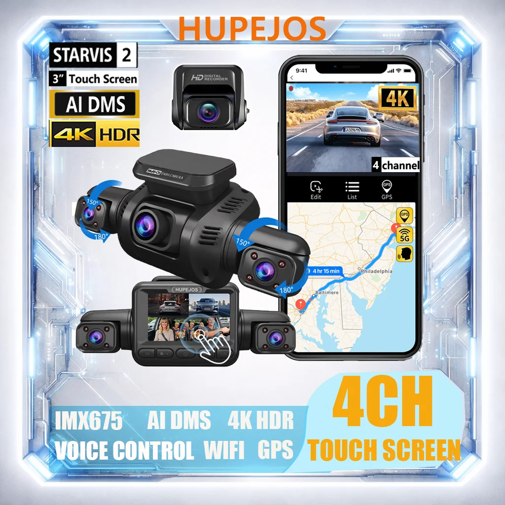 HUPEJOS V8Max-4CH STARVIS 2 HDR IMX675 360° 4K Dash Cam With AI DMS Built-in GPS WiFi Voice Cont...