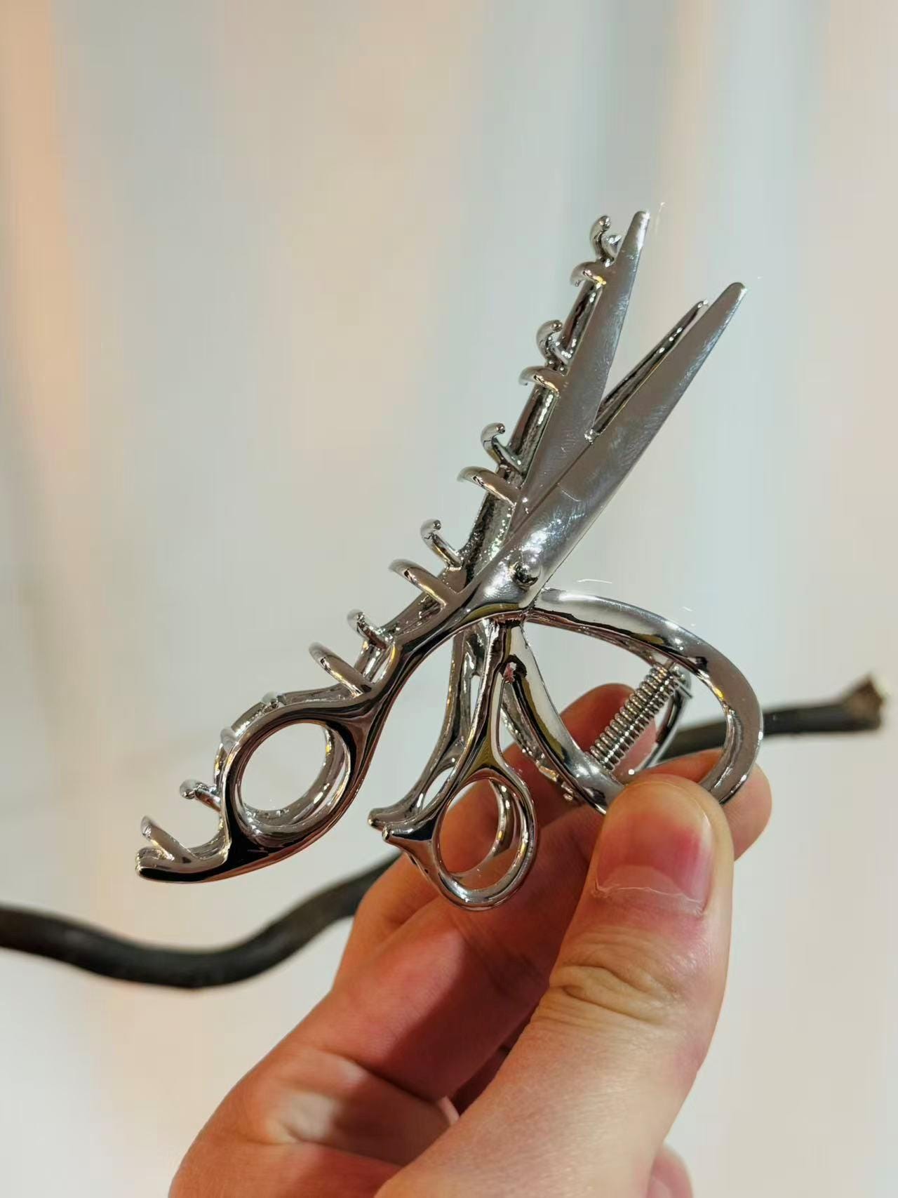 Make a sharp statement with this scissor shaped metal hair claw clip Featuring a unique hairstylist ...
