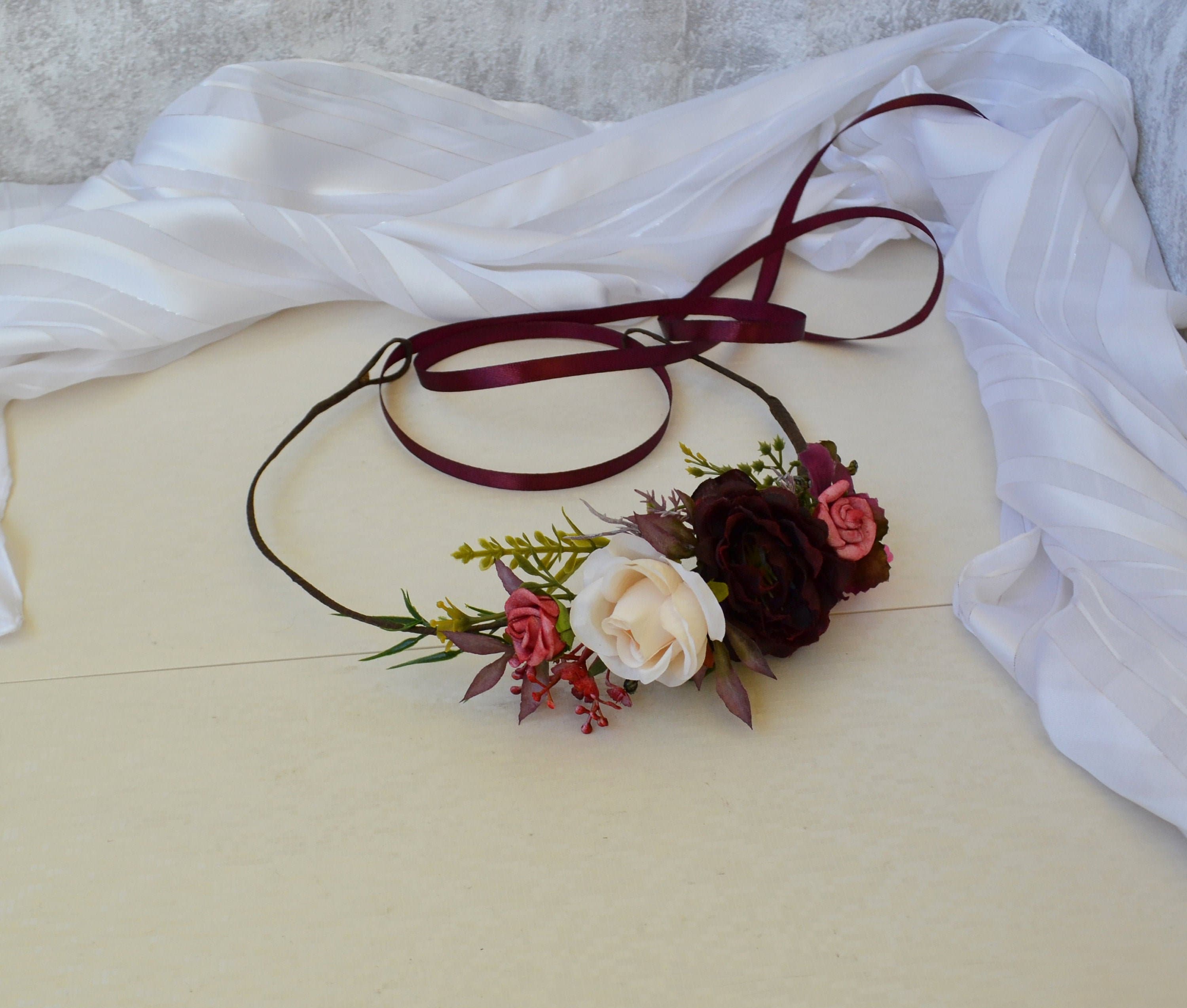 Flower girl crown, burgundy ivory kids floral crown, Wedding toddler Headband. The lenght of the kid...