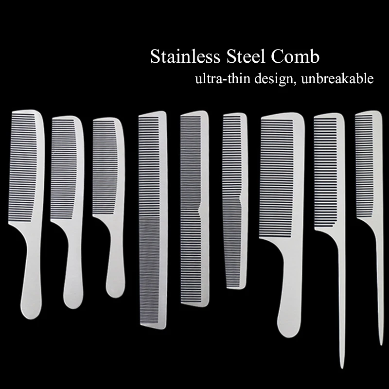 Barber Salon Hair Cutting Comb Ultra-Thin Stainless Steel Silver Metal Comb Barbershop Hairdressing ...