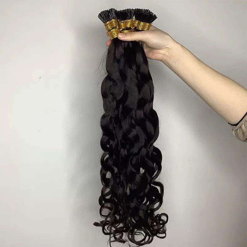 100 Strands/Pack Curly I Tip Hair Extensions Microlink Deep Wave Hu...