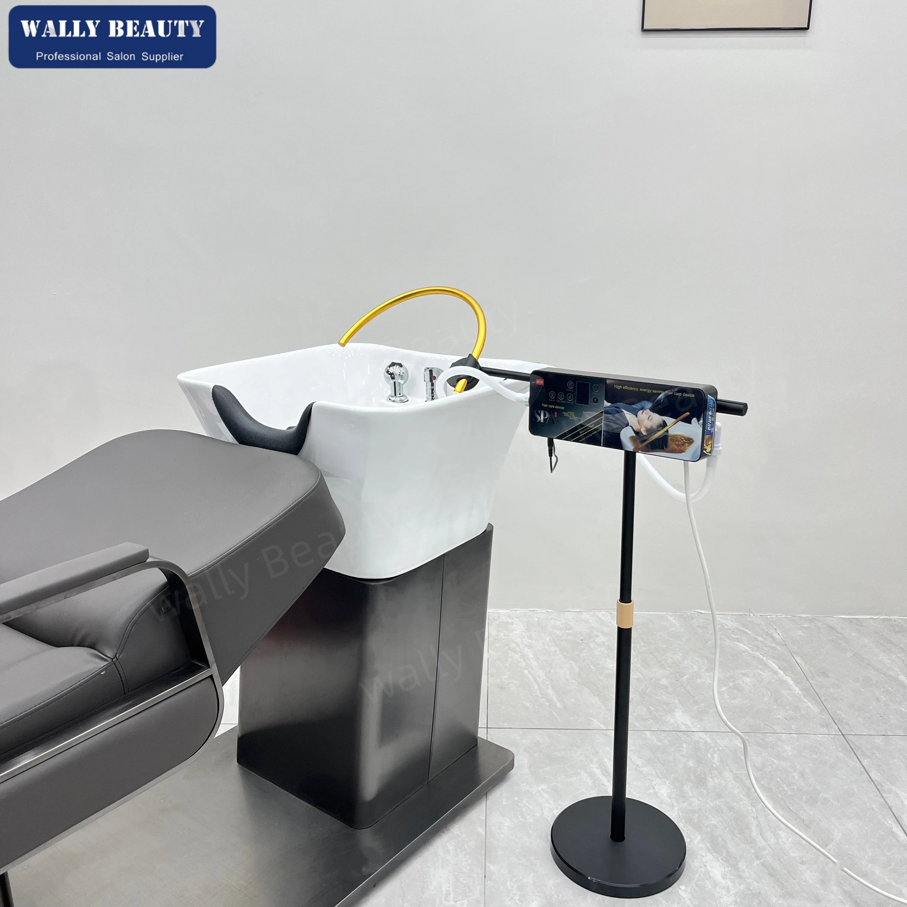 Portable hair wash basin for hair salons. Vertical thickened double bucket electric hair wash bed wi...