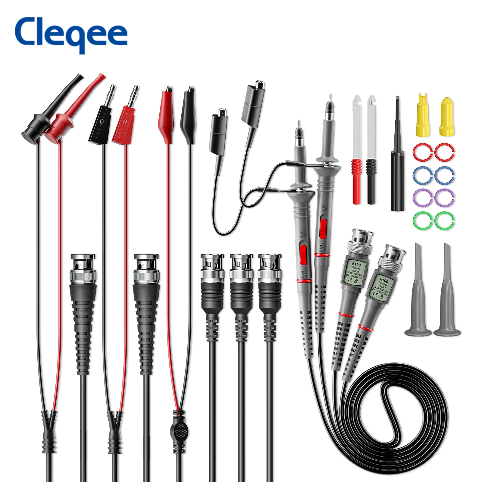 Cleqee CKT014 Universal Oscilloscope Probes with Accessories Kit 100MHz 1X 10X with BNC Test Leads w...