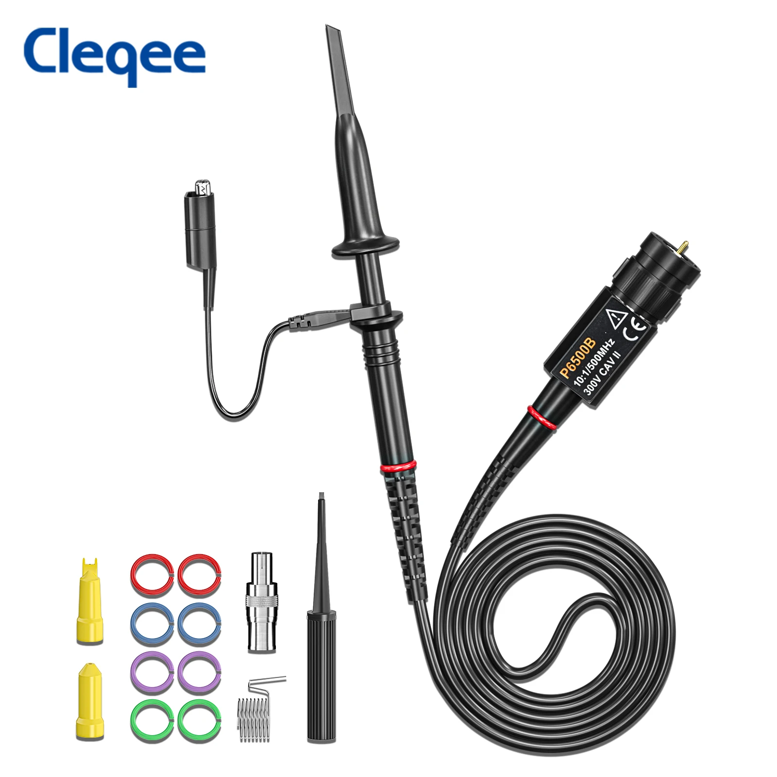 Cleqee P6500B 500Mhz Oscilloscope Clip Probe 10x High Precision with Adjust Tool Accessory Kit