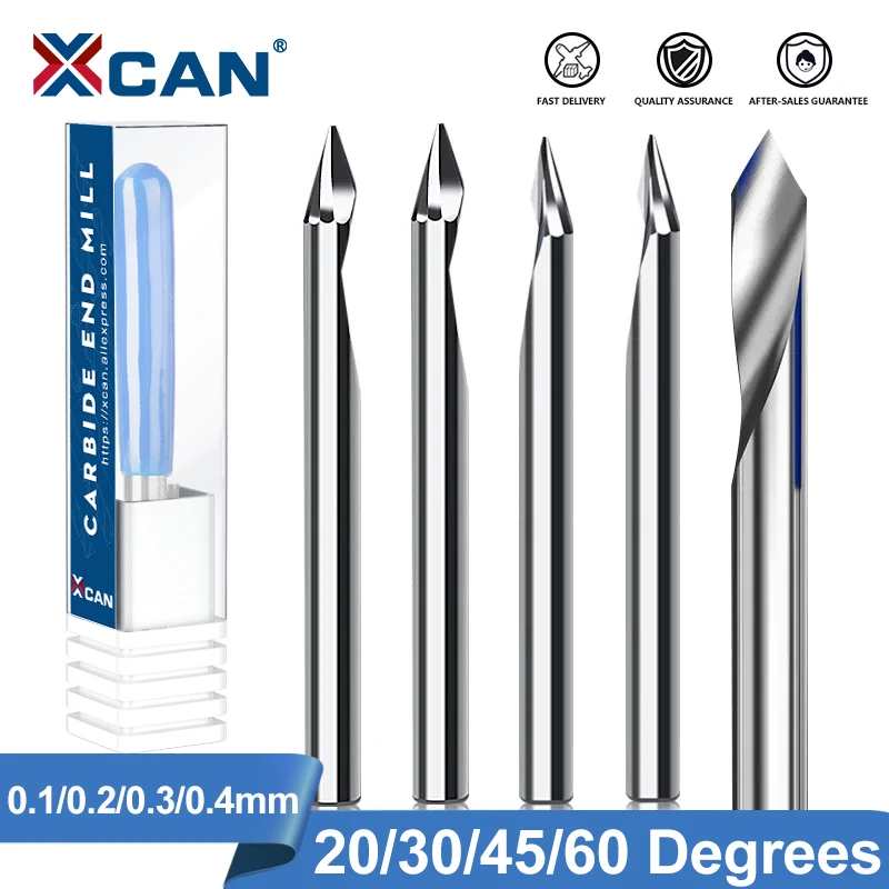 XCAN Engraving Bit 3.175mm Shank End Milling Cutter 20/30/45/60 Degrees Tip 0.1 0.2 0.3 0.4mm Carbid...