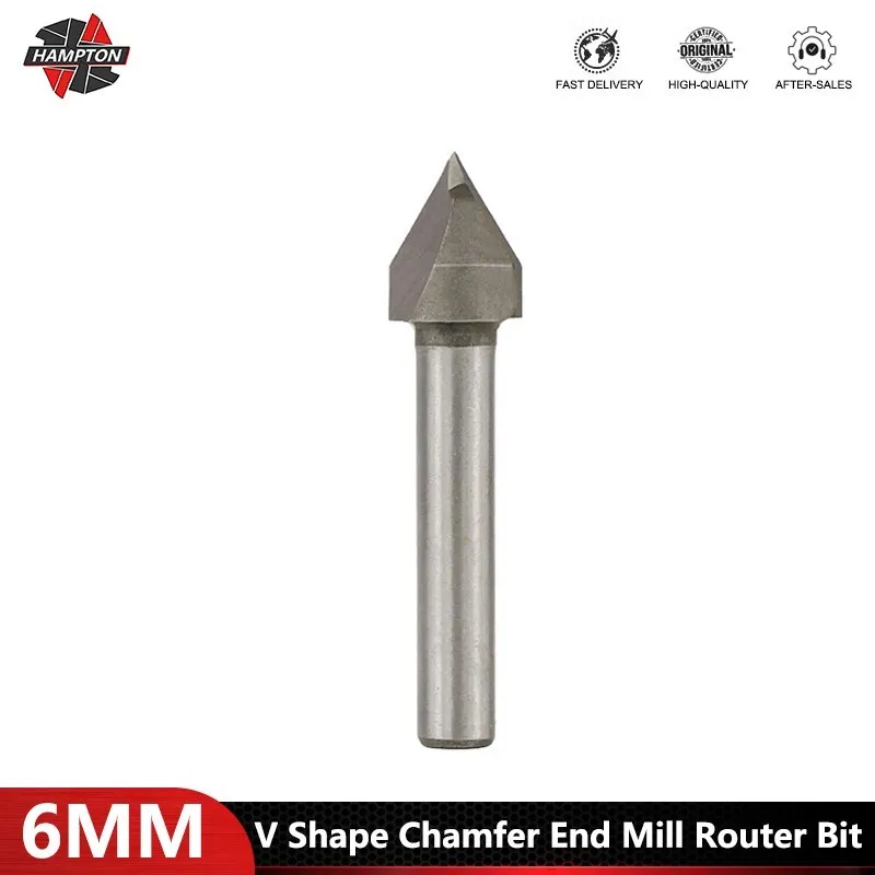 60 Degree 6mm V Shape Chamfer End Mill Router Bit 3D Milling Cutter for Woodworking Router Bit