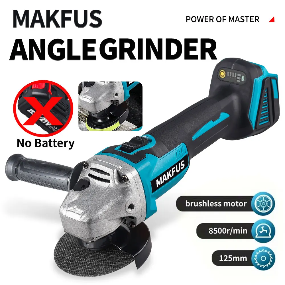 MAKFUS Cordless Brushless Angle Grinder 125mm/100mm Heavy Duty Electric Grinder and Polisher, Compat...
