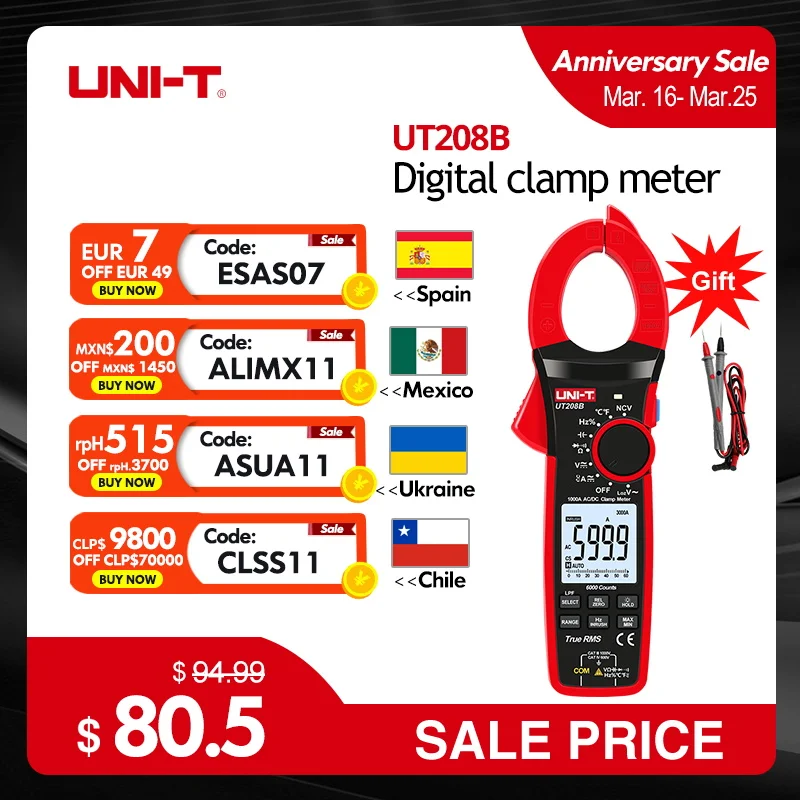 UNI-T 1000A True RMS Digital Clamp Meter 1000V AC DC Voltmeter Pliers Ammeter UT206B UT207B UT208B I...