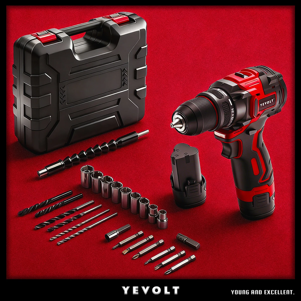 YEVOLT 12V Brushless Electric Cordless Drill Driver 2-Speed Electri...