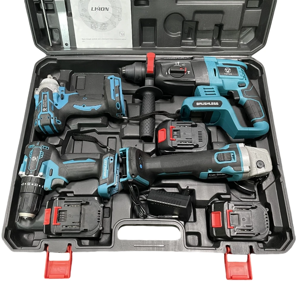 21V 4 in ONE Brushless Cordless Power Tool Kit Impact Drill Wrench ...