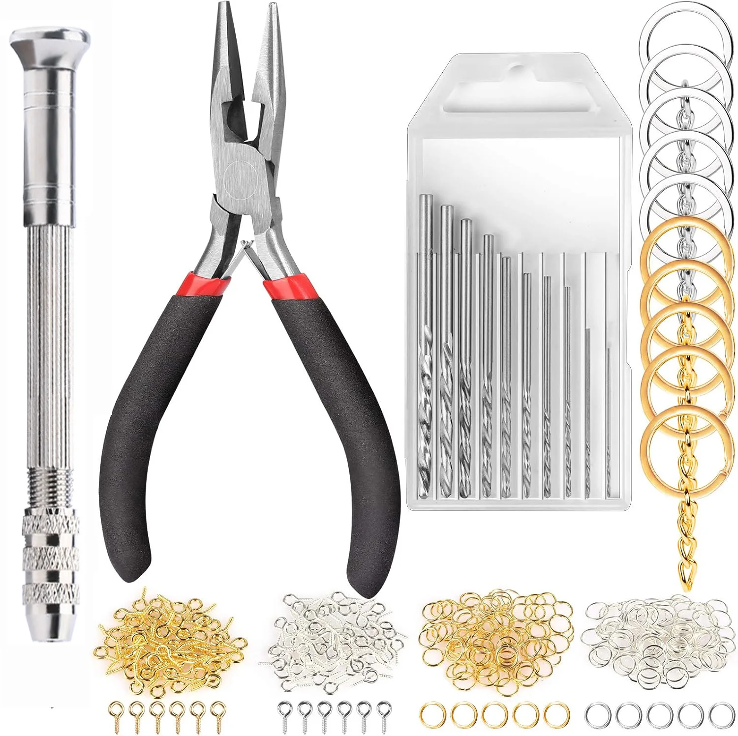 Jewelry Making Supplies Kit with Keychain Kit,Jewelry Pliers,Mini Hand Resin Drill Pin and Jewelry F...