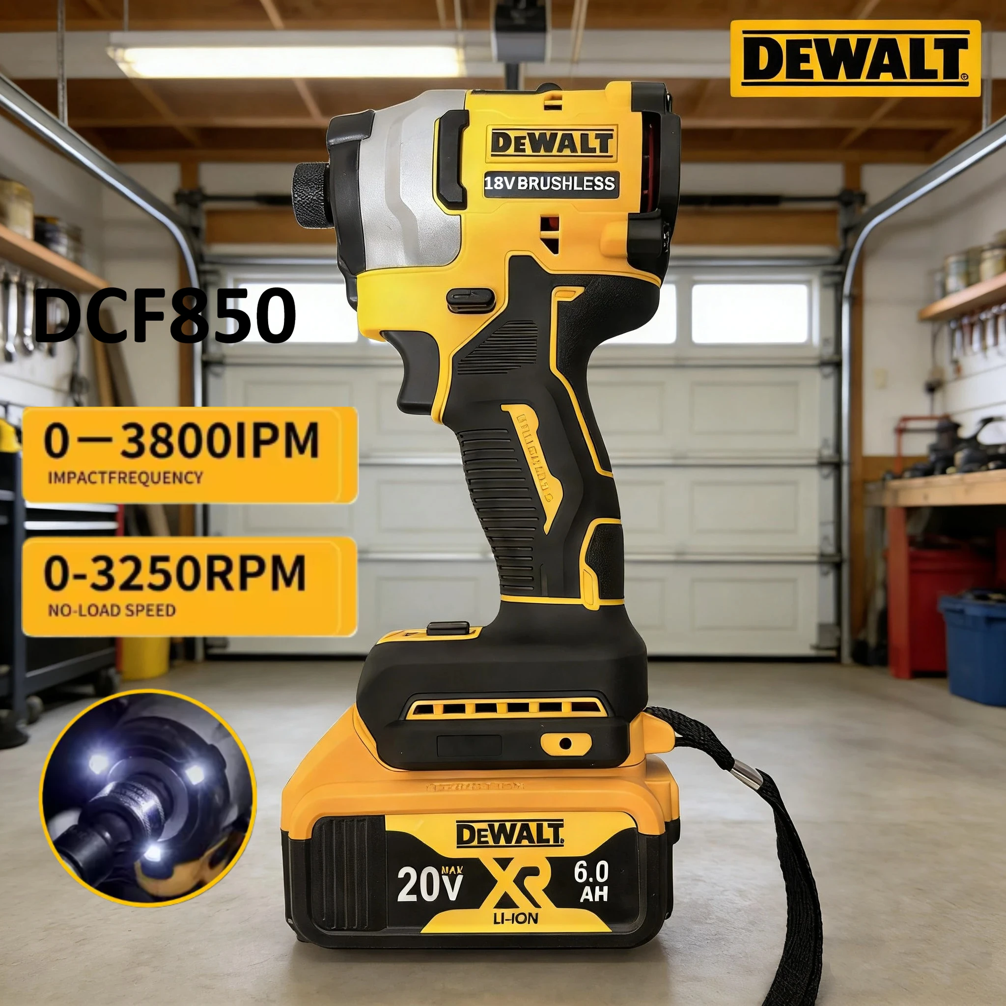 Dewalt DCF850 Rechargeable Cordless Impact Wrench, 18V-20VLithium Electric Battery, Power Tools Larg...