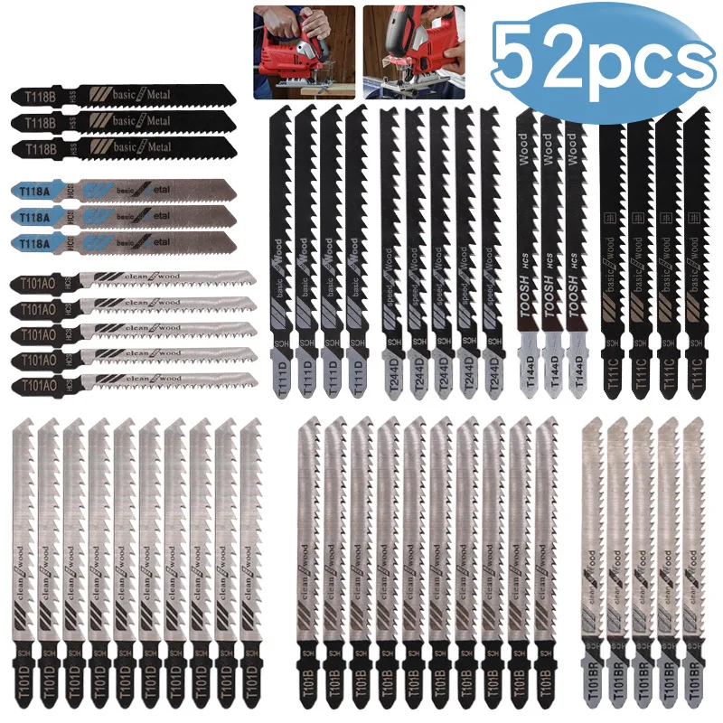 FOXBC T-Shank Jigsaw Blades 52PCS Woodworking for Wood Metal Cuttin...