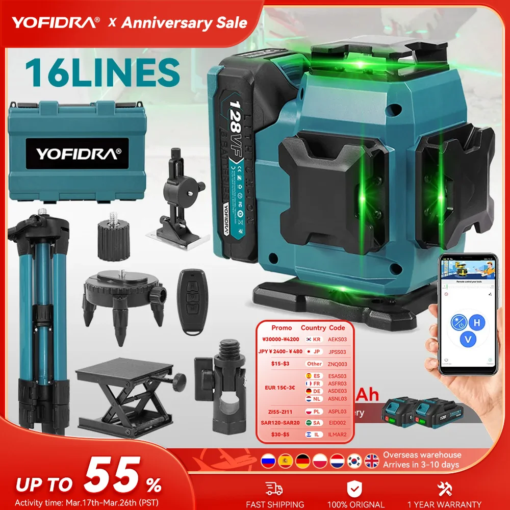YOFIDRA 360 Horizontal Vertical 16Lines 4D Laser Level Automatic Se...
