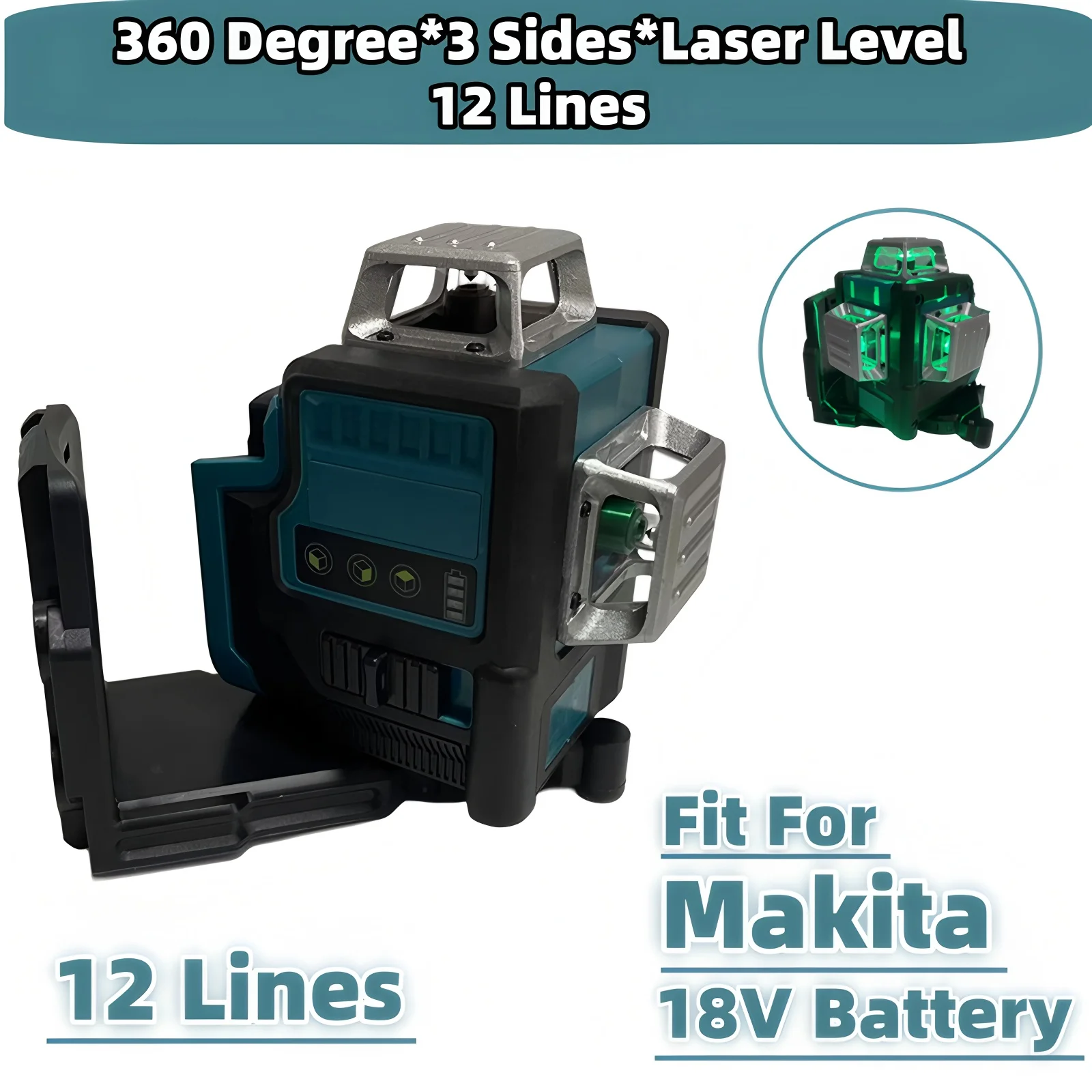 For Makita 18V Battery 12 Lines 3 Sides*360 Degree Laser Level Hori...