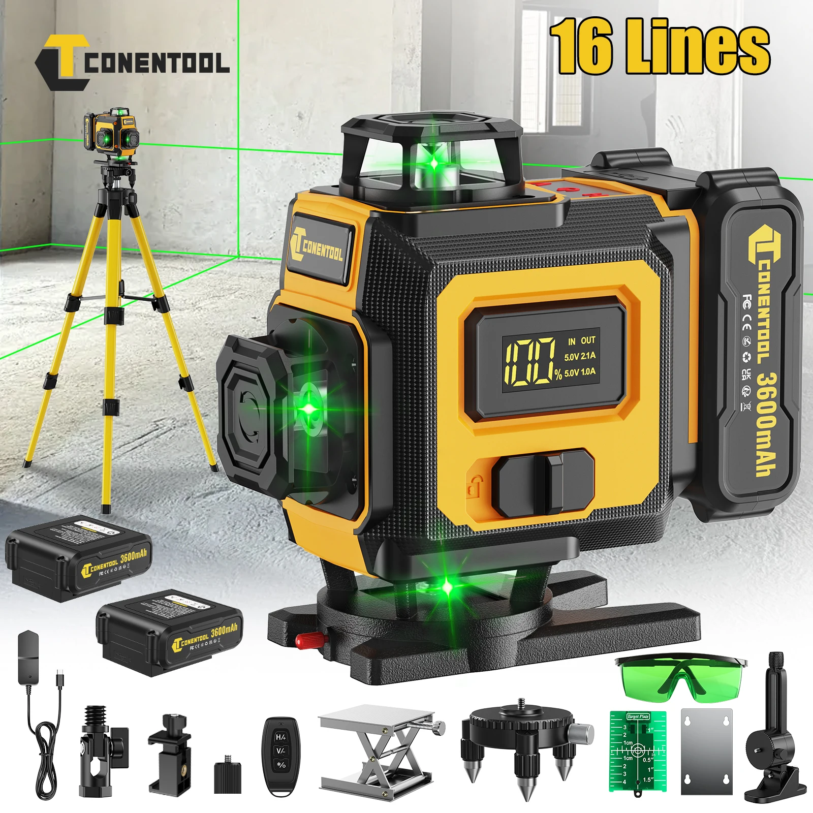 CONENTOOL 16 Lines Laser Level Tripod APP Remote Control Horizontal Vertical 4D Laser Level 3600mAh ...