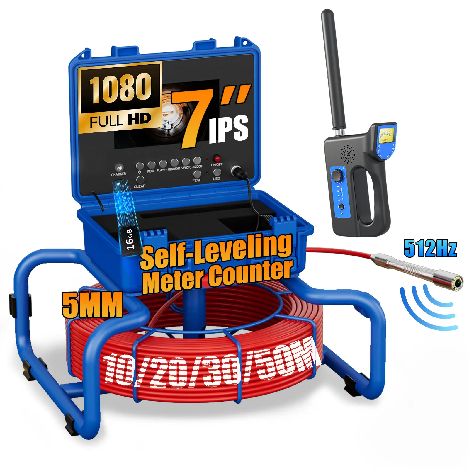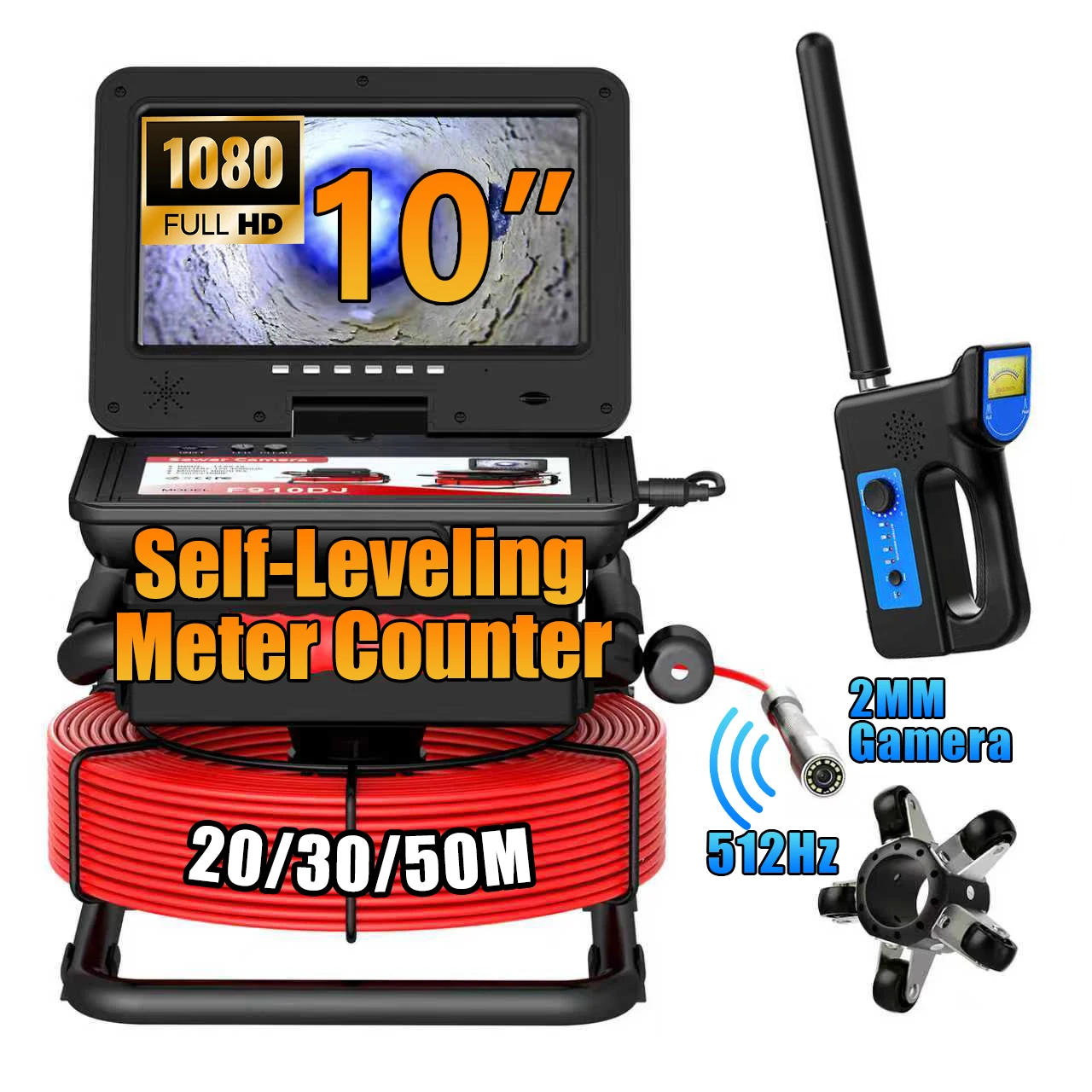 Sewer Inspection Camera - 512Hz Self-Leveling Sewer Camera with Meter Counter, IP68 Waterproof Endos...