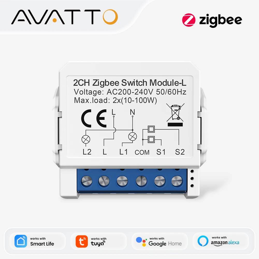 AVATTO 1/2/3 Gang Tuya Zigbee Light Switch Module No Neutral Wire, ...