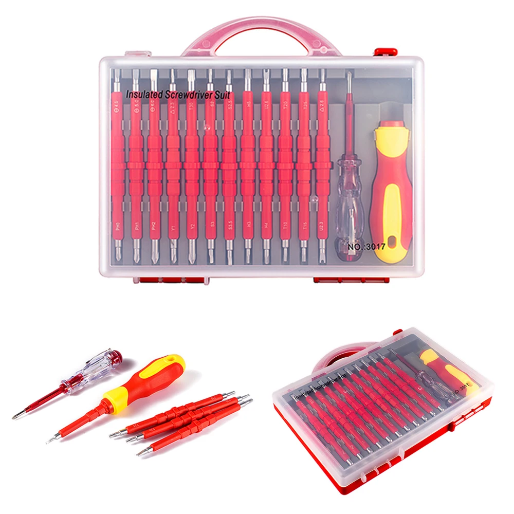 14pcs Insulated Plastic Handle Screwdriver Bit VDE Multi Tool Set P...