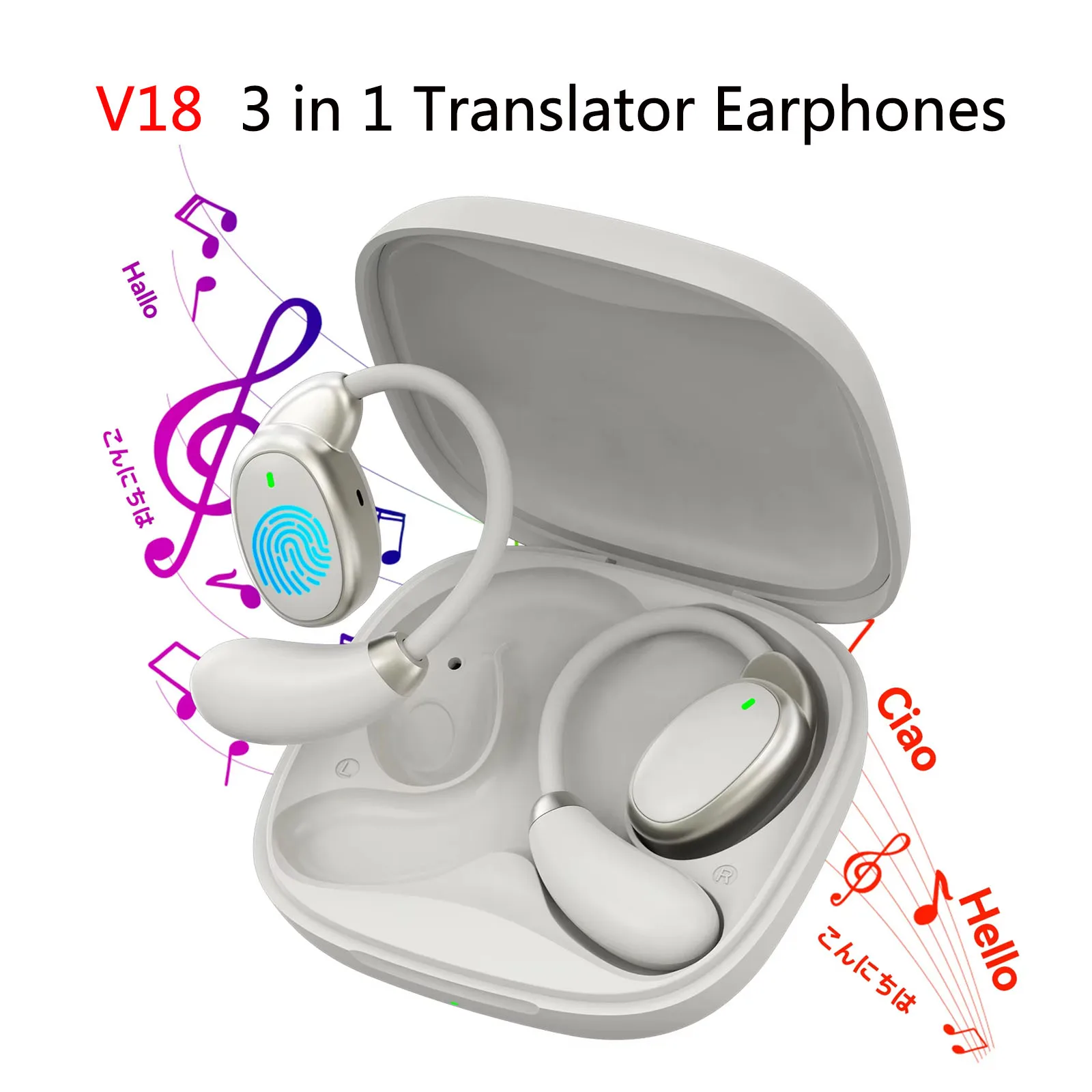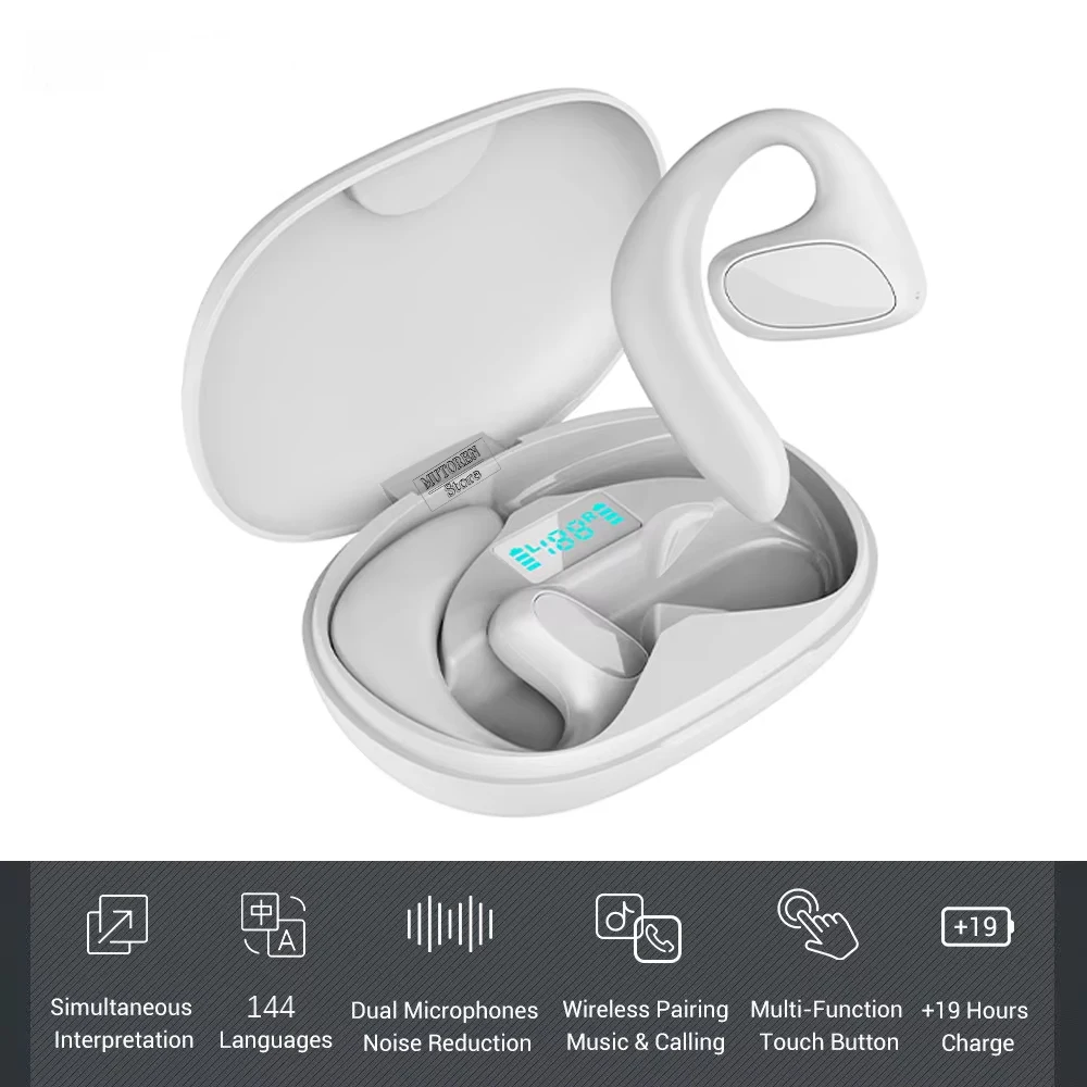 AI Real-time Language Translation Earphones Wireless BT 144 Languages Ear Hanging Headphone Translat...