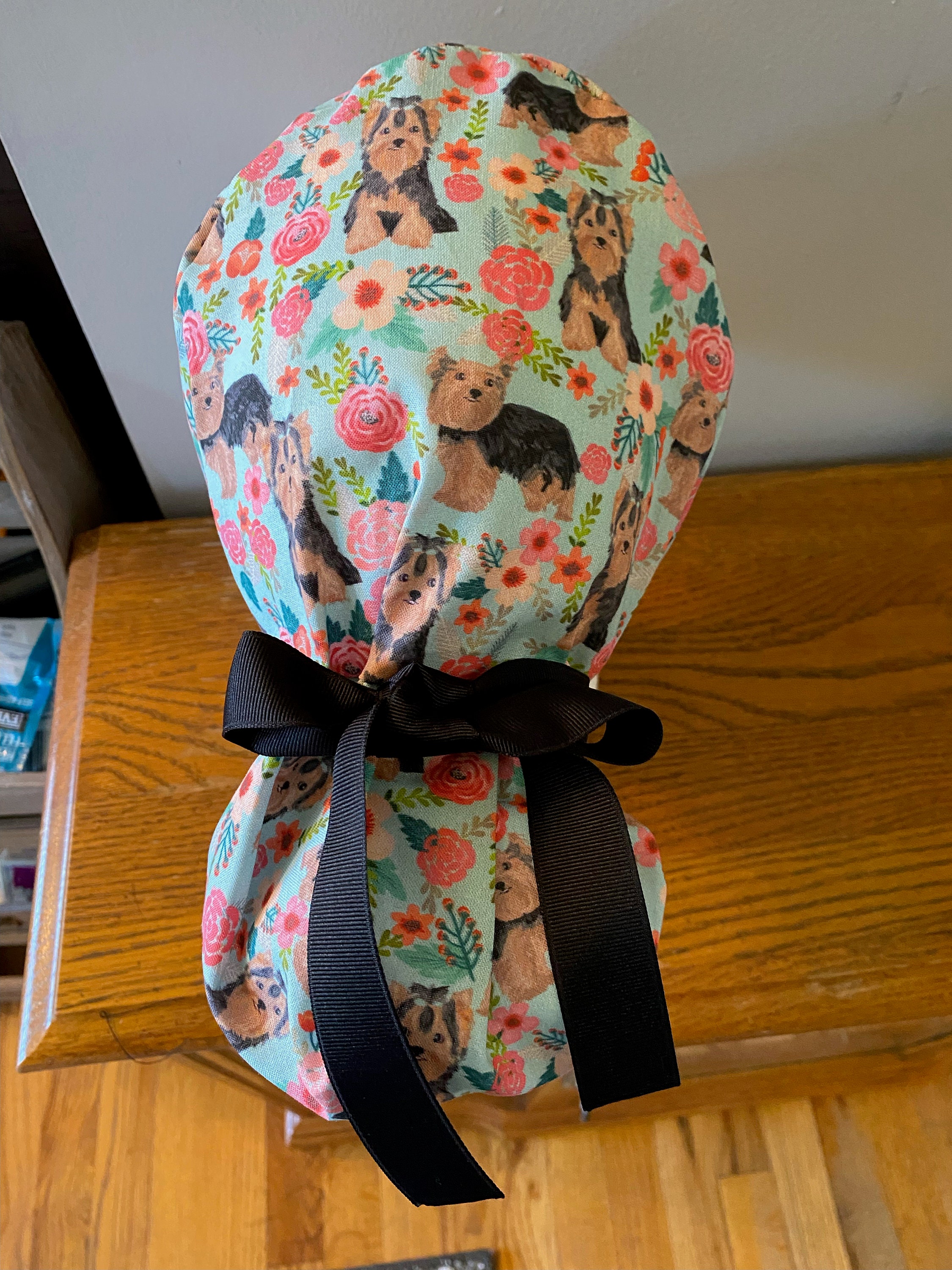 Yorkie Scrub Cap Fitted Ponytail Scrub Hat! Made in USA- Eligible for Free Shipping Scrub Cap for He...