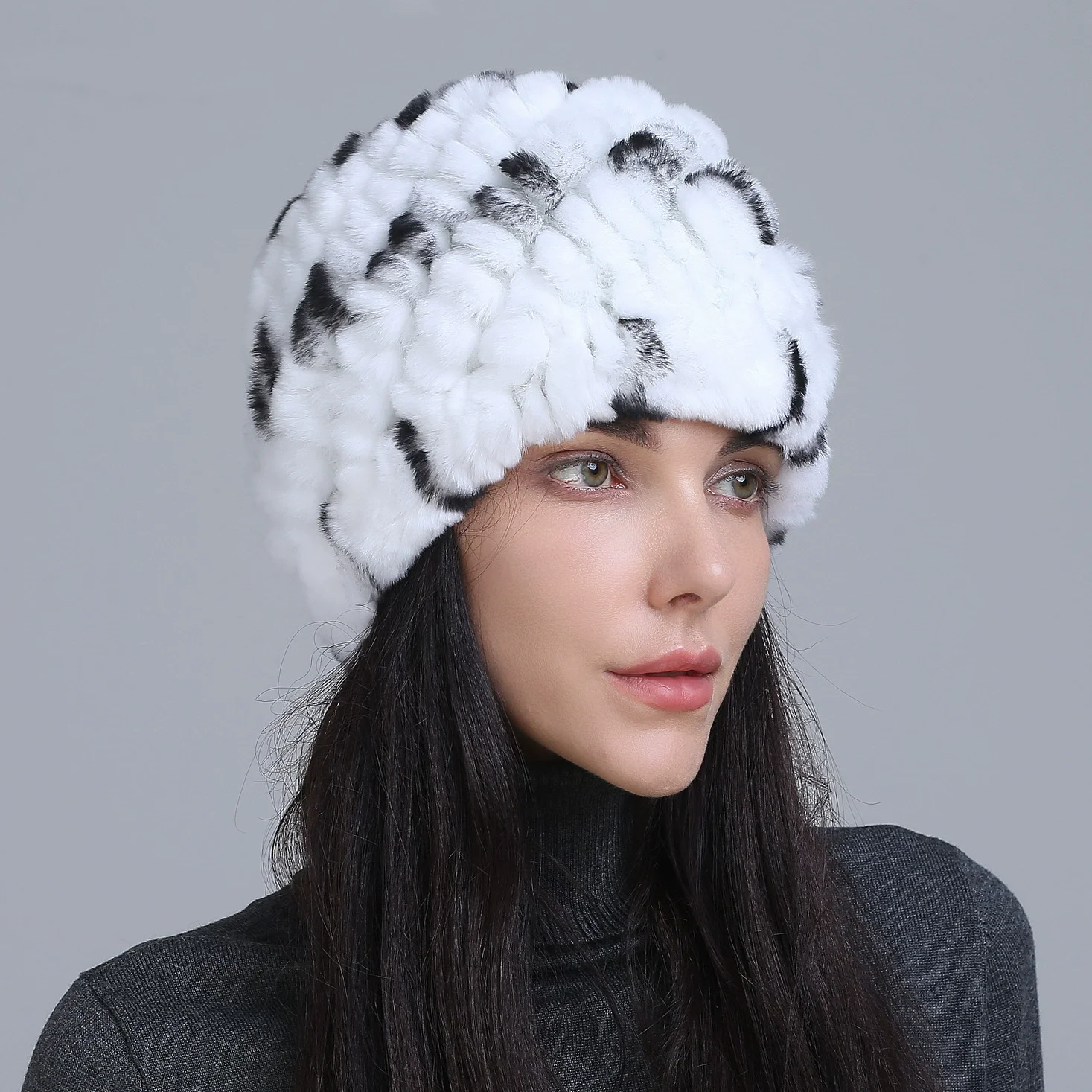 Hot Sale Lady Real Rex Rabbit Winter Fur Hat for Women Russian Real...