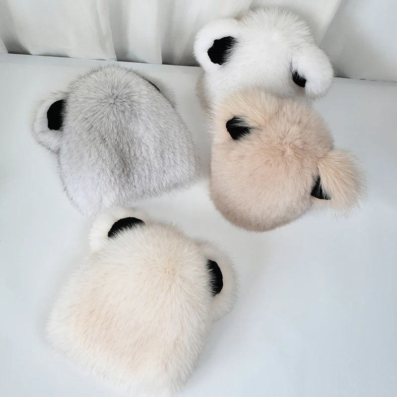 Winter Genuine Fox Fur Hat for Women Real Fluffy Fur Beanie With Be...