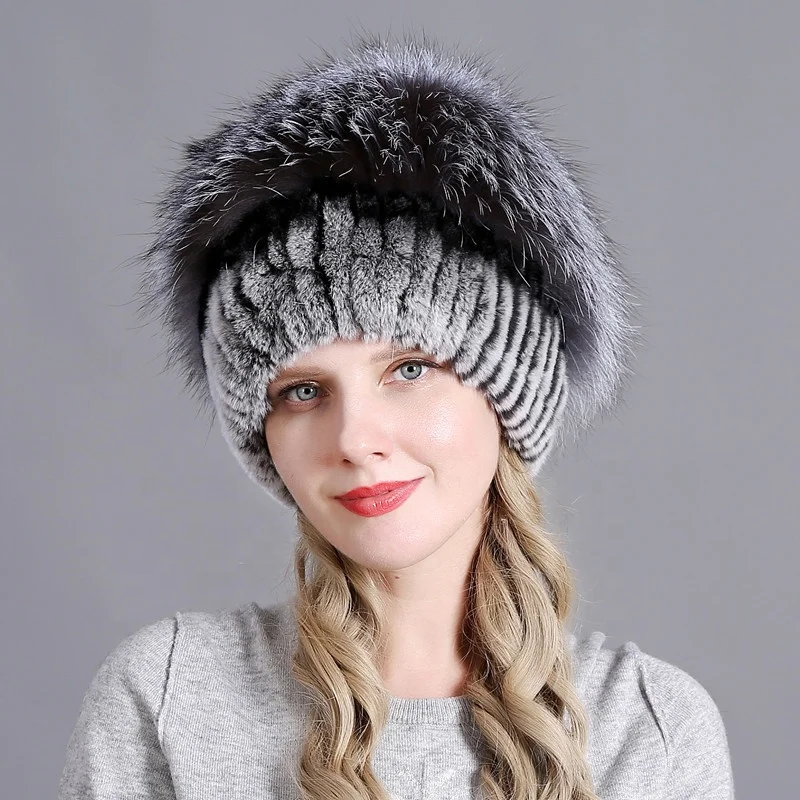 Women Winter Warm Real Rex Rabbit Fur Hat Snow Cap Winter Hats for ...