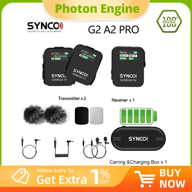 SYNCO G2 A2 Pro G2 A2 Mega 2.4G Wireless Lavalier Microphone with Charging Case for Smartphone Camer...