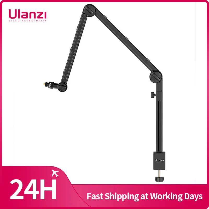 VIJIM LS24 Desktop Microphone Boom Arm Stand Extend 1/4'' 3/8'' 5/8'' Screw 90° Hover Bracket fo...