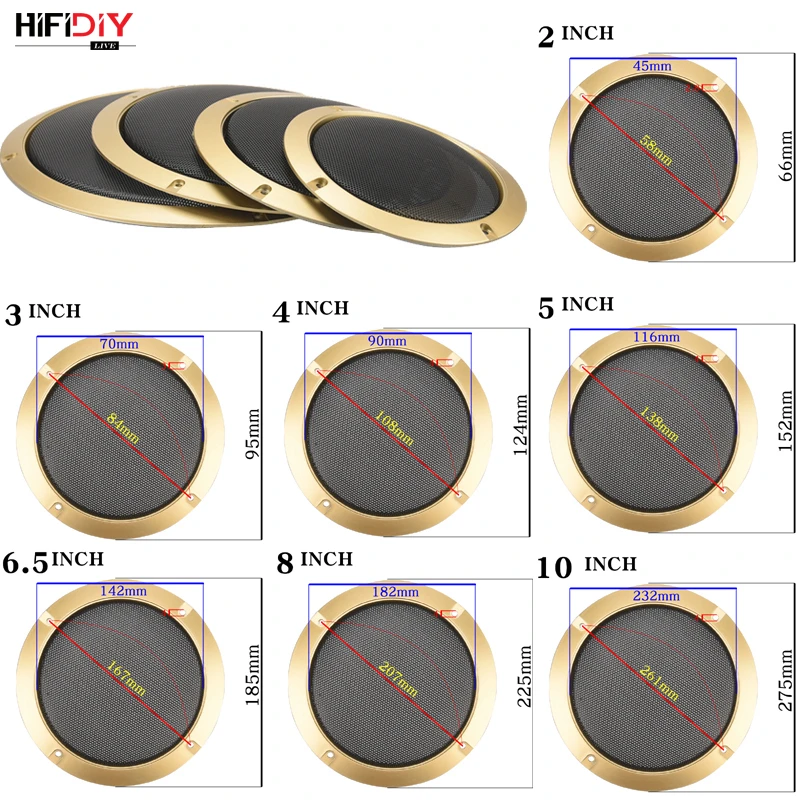 Golden 2 3 4 5 6.5 8 10 INCH Speaker Net Cover High-grade Car home mesh enclosure speakers Plastic F...