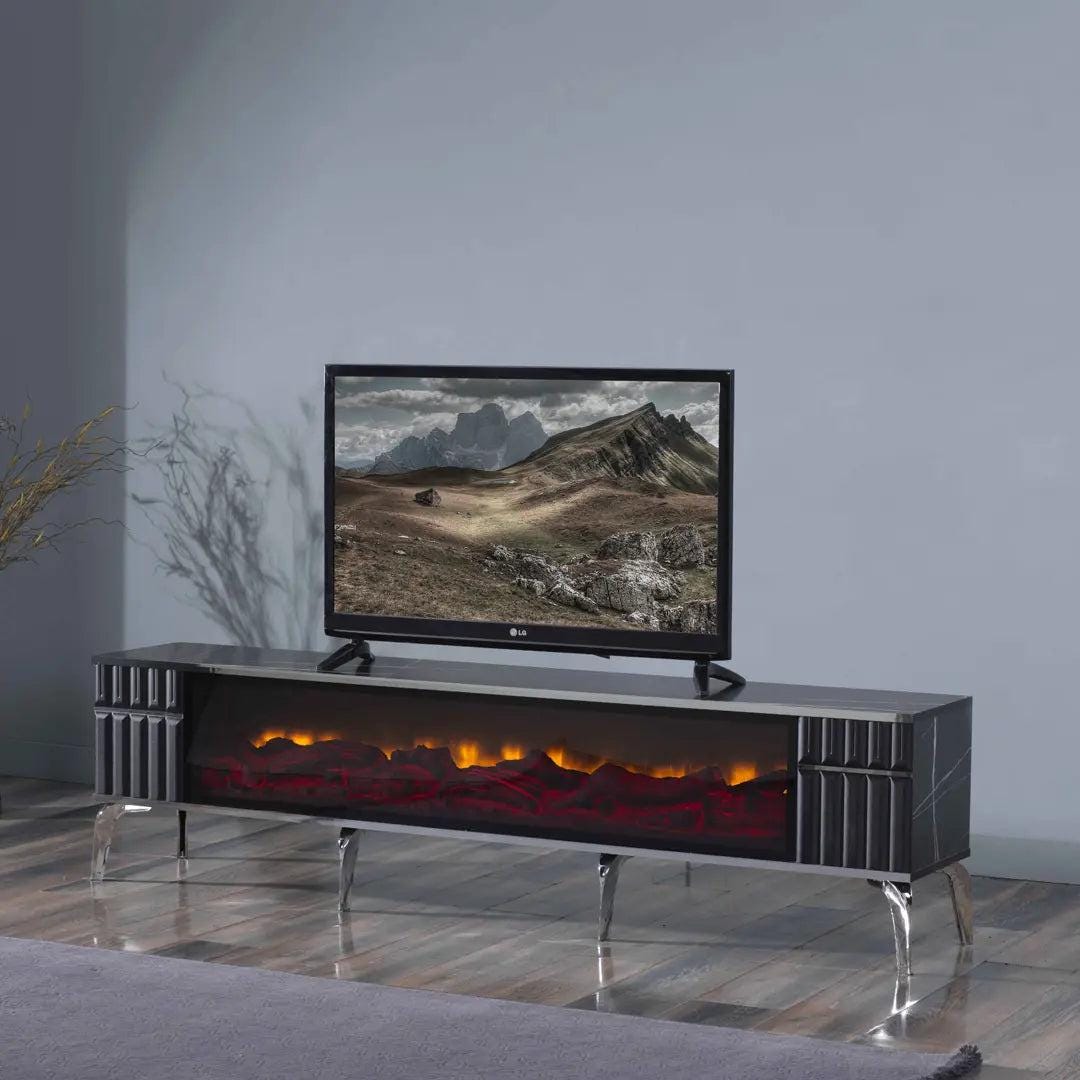 Contemporary Style TV Stand Electric Fire Place 3-Level Brightness ...