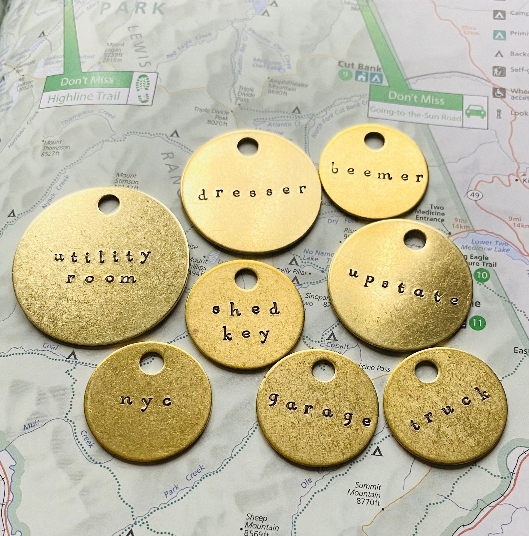 Listing is for ONE hand-stamped brass metal keychain with a word/s of your choice! Use these handy k...