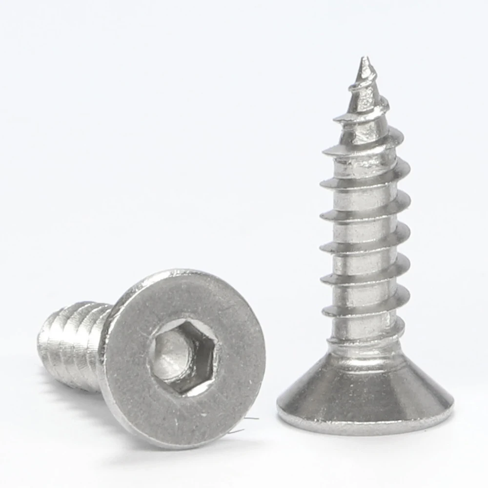 100pcs/Bag 304 Stainless Steel Hex Socket Flat Head Screws Self Tap...