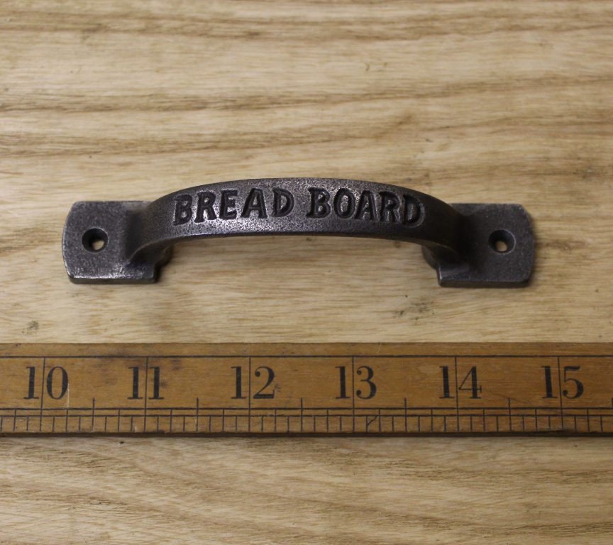 A beautiful cast iron pull handle with BREAD BOARD cast into it. Dimensions; L: 120mm W: 20m Protrus...