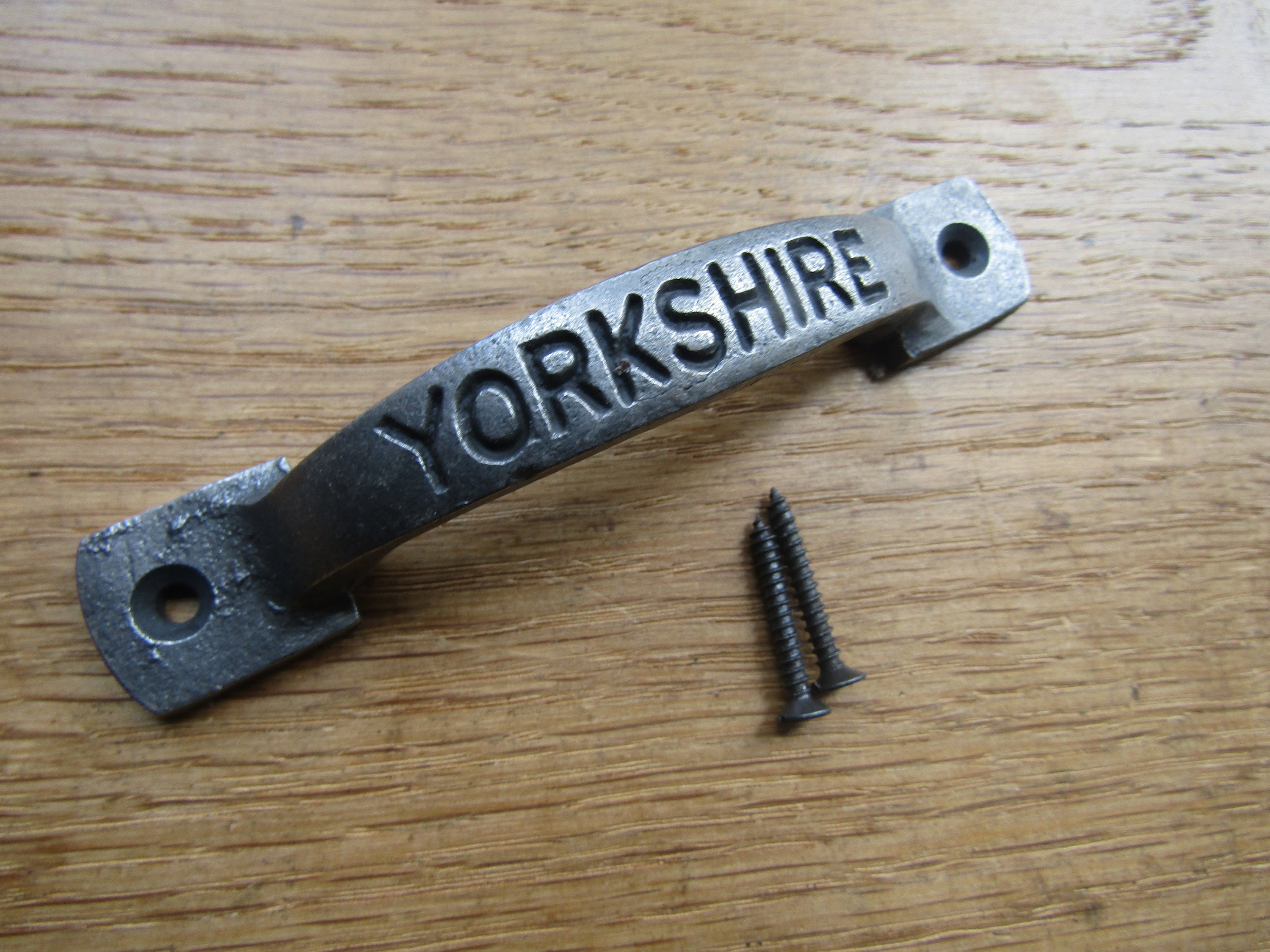 Yorkshire embossed Chunky d handle c/w screws Sold as single Height 30mm, Length 125mm, Handle Dista...