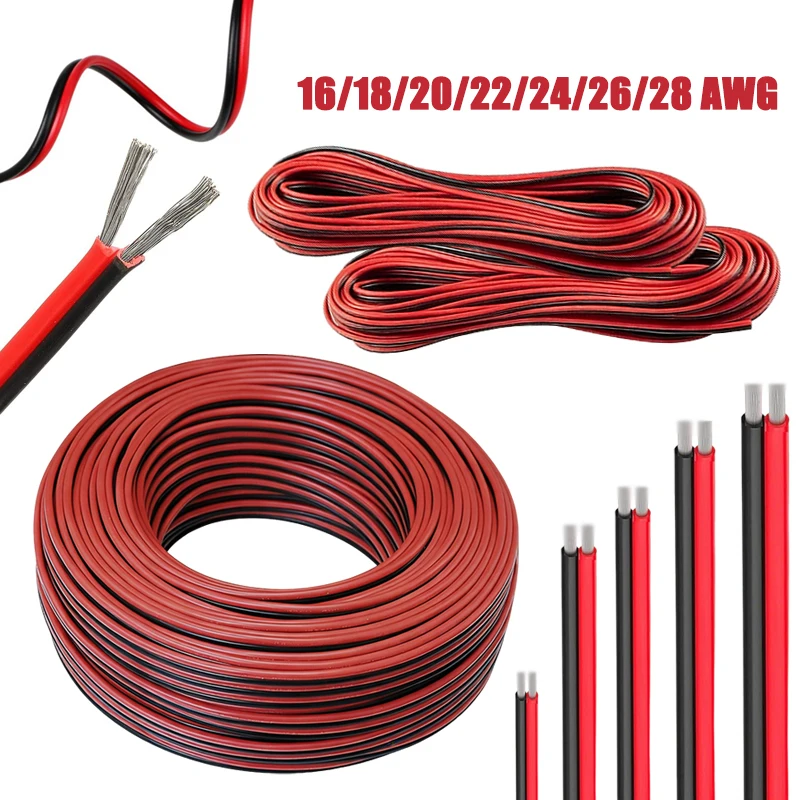 5/10m Red Black Hookup Wire 2 Pin Automotive Flat Cable 16/18/20/22/24/26/28 AWG Extension Wires Doo...