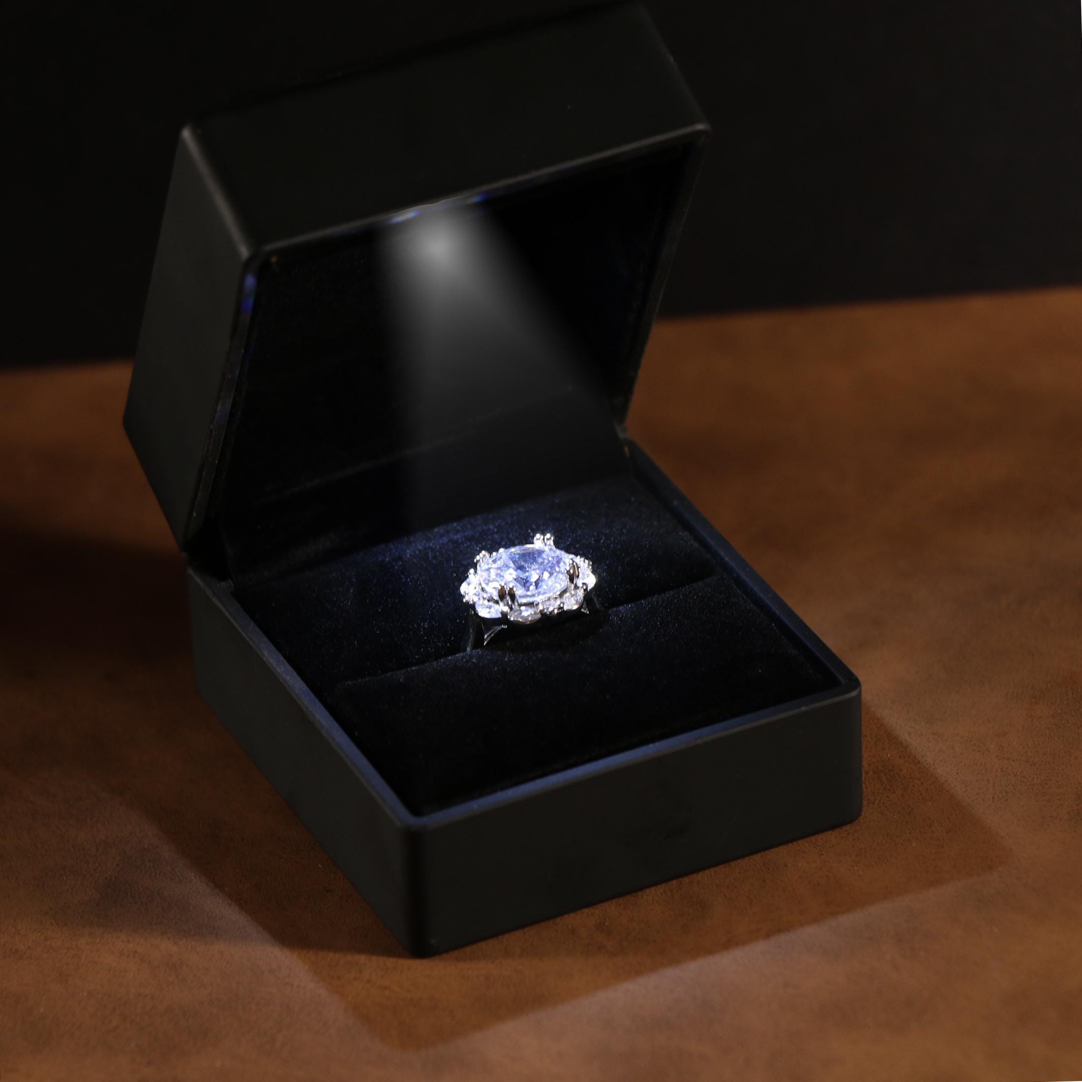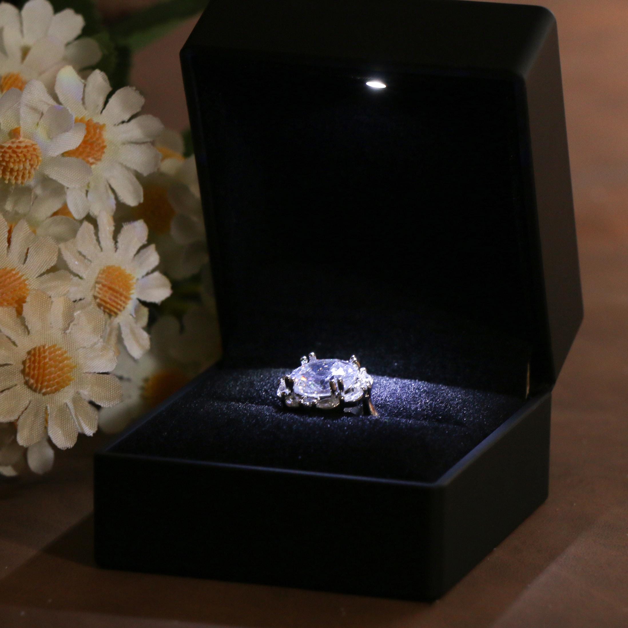 "Black LED Engagement Ring Box - Elegant & Luxurious Make your proposal an unforgettable mo...