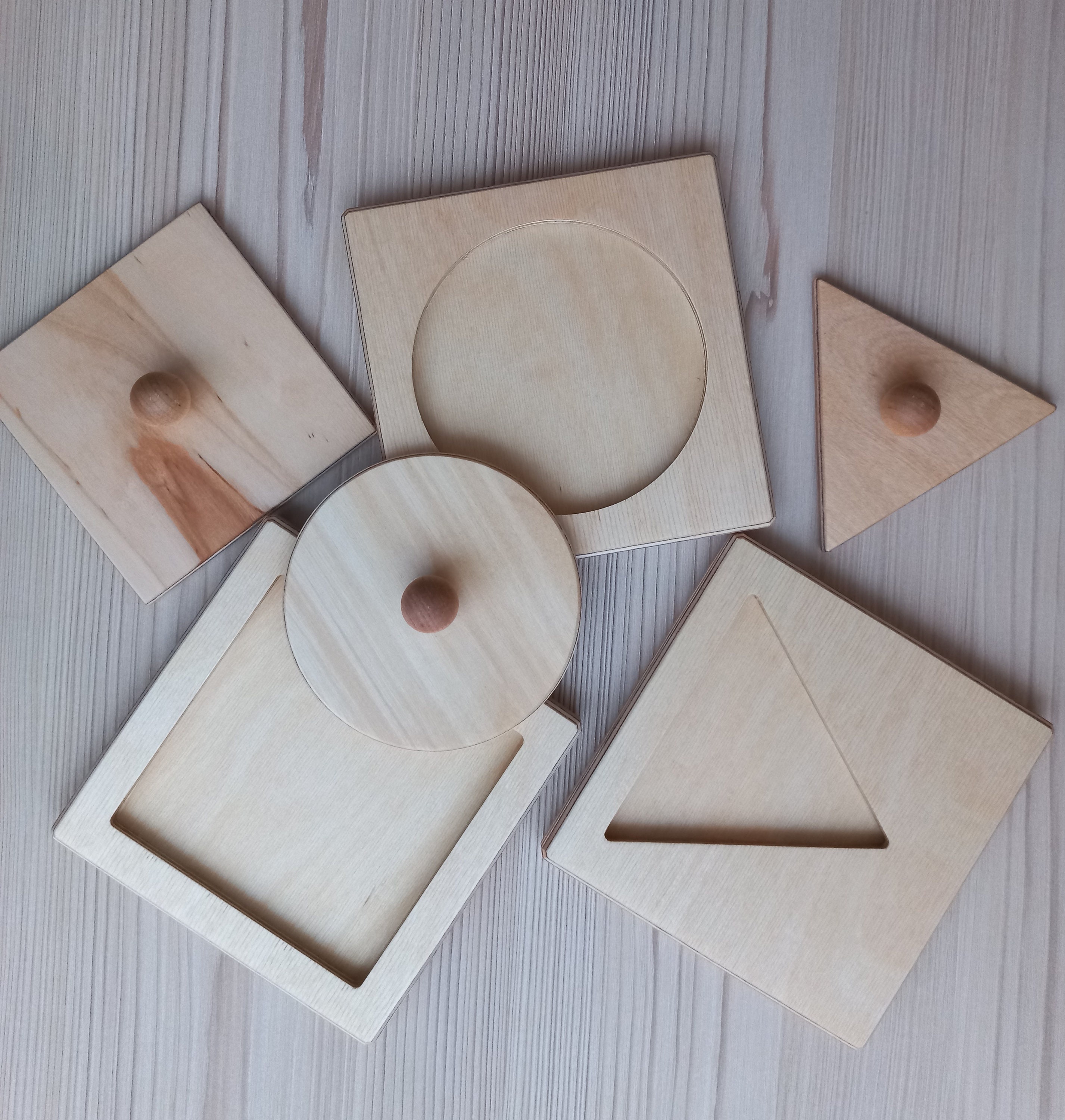 Geometric wooden puzzles. These specialized geometry puzzles are a great help for children learning ...