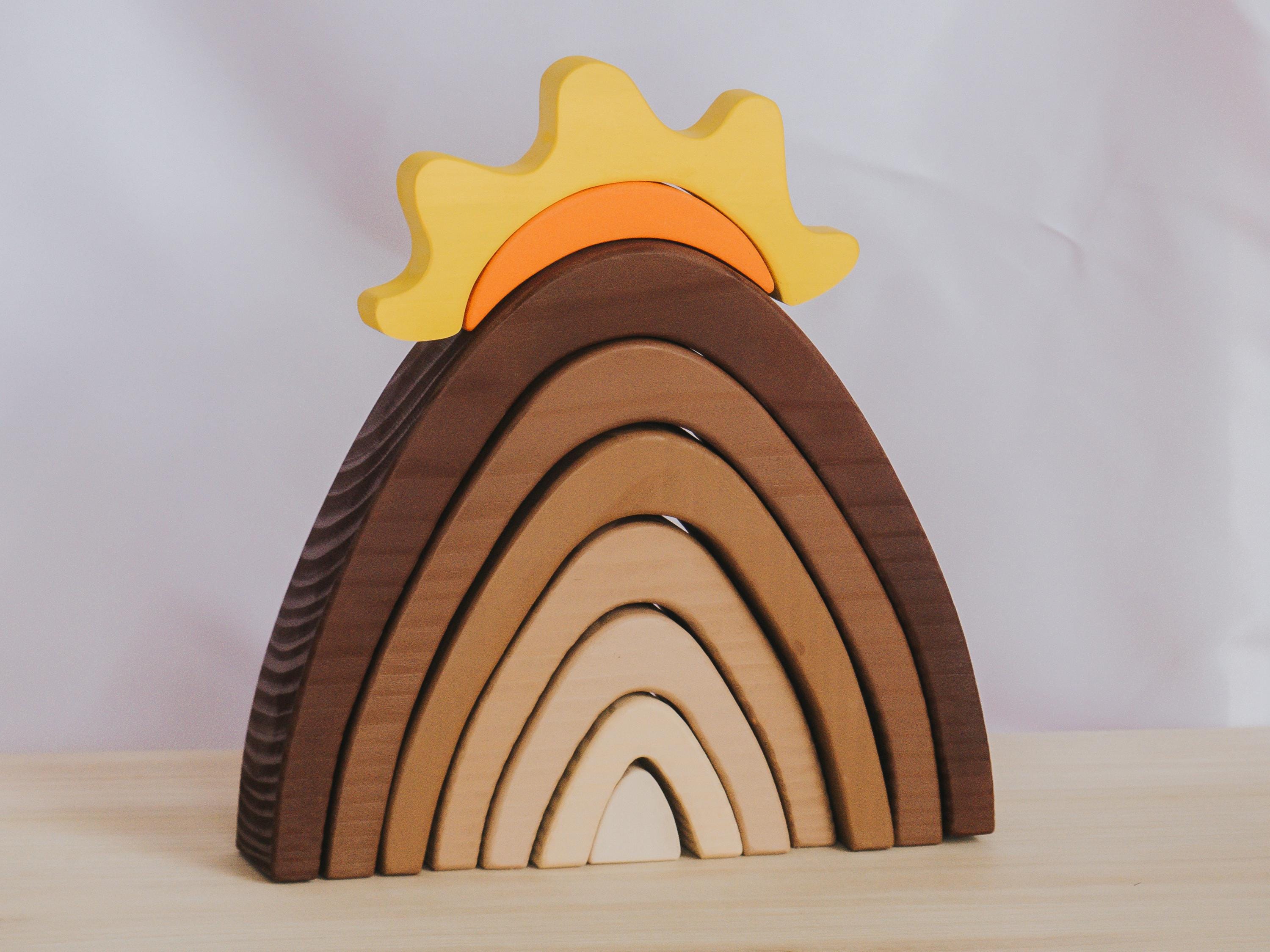 "Wooden Mountain Stacker With Sunrise Toy, Puzzle Toy, Waldorf Toddler Toys, Educational Toys, ...