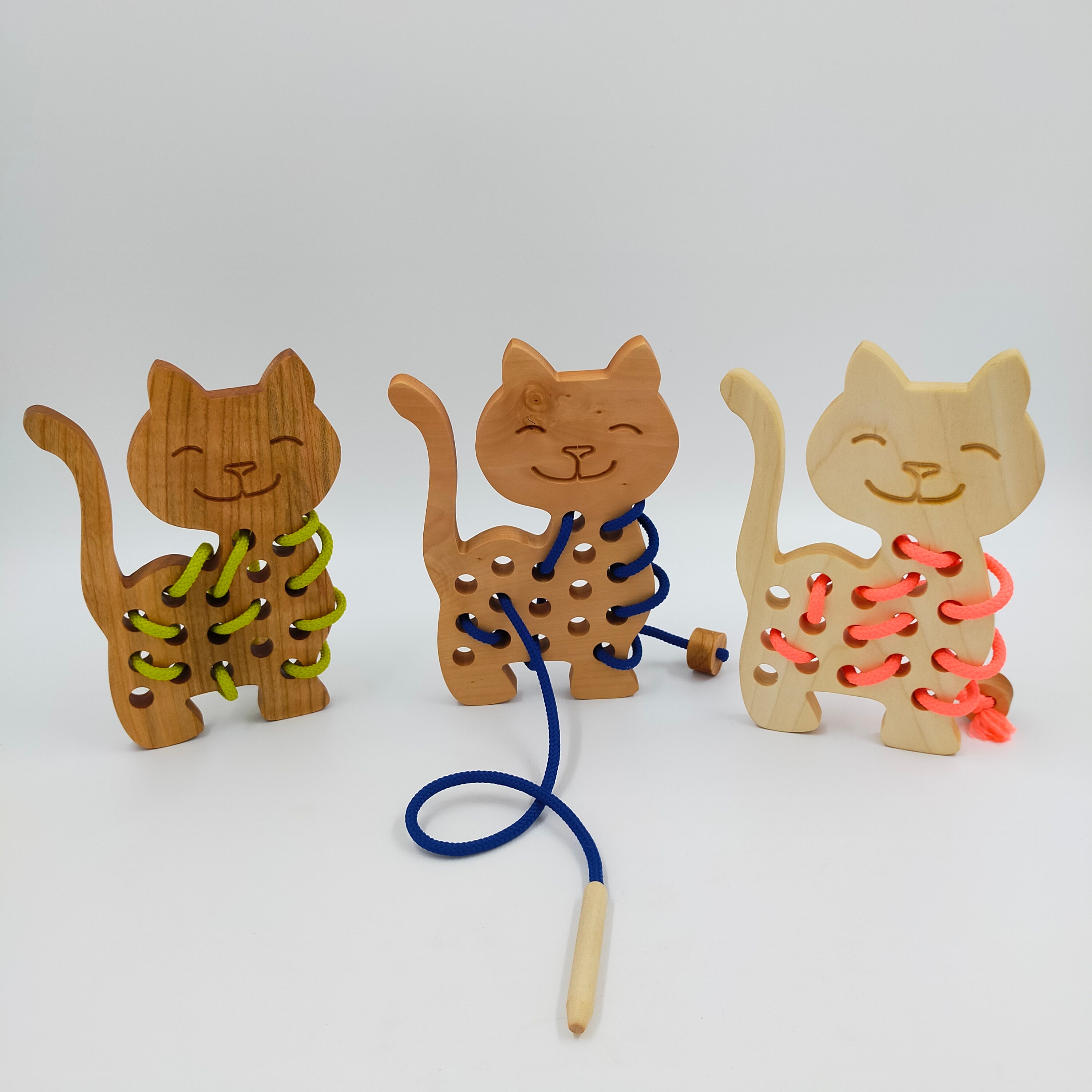 "Wooden cat with lacing - interesting educational game for children. Kids have a lot of fun pla...