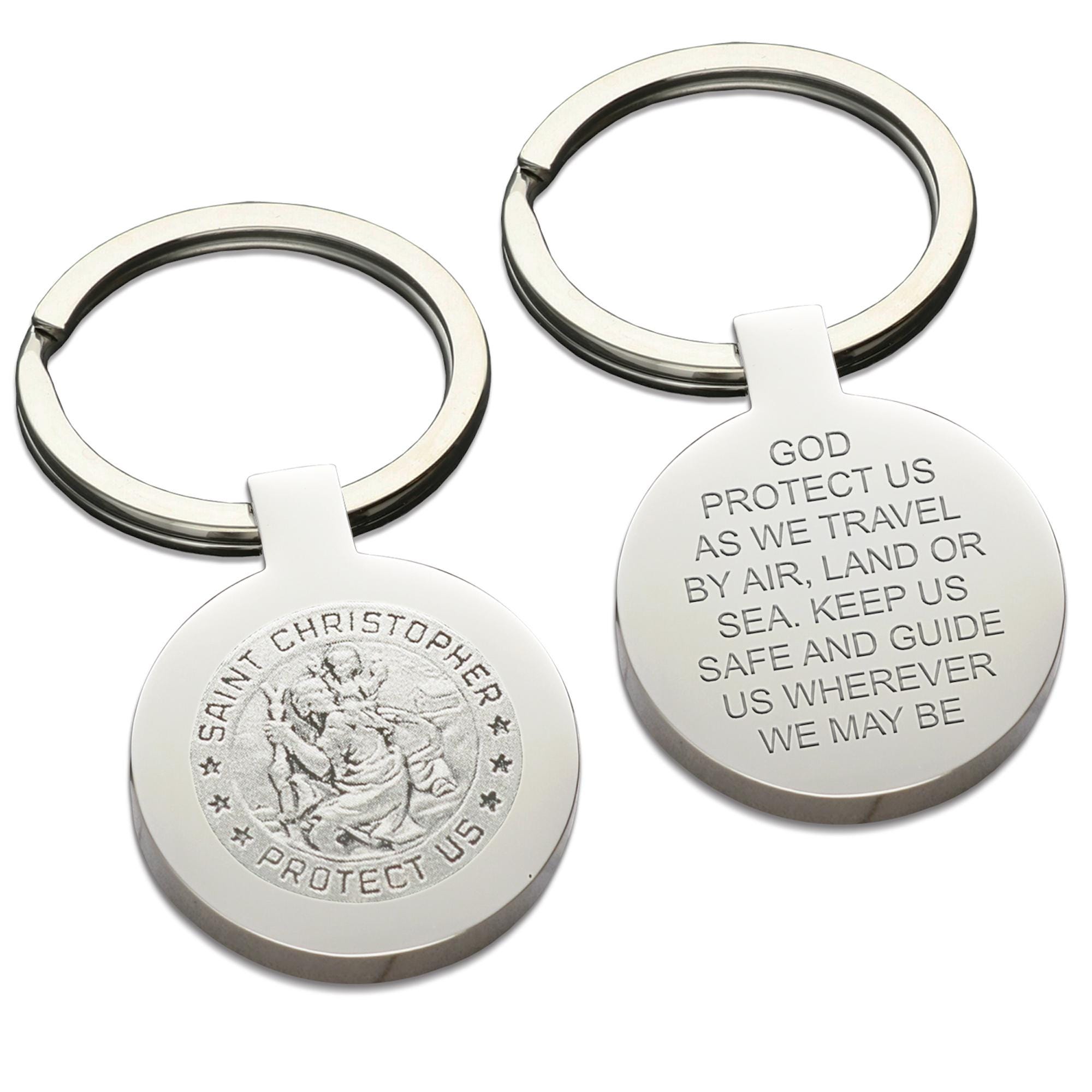 St Christopher with Traveller's Prayer Polished Stainless Steel Key Ring (keychain) - superb quality...