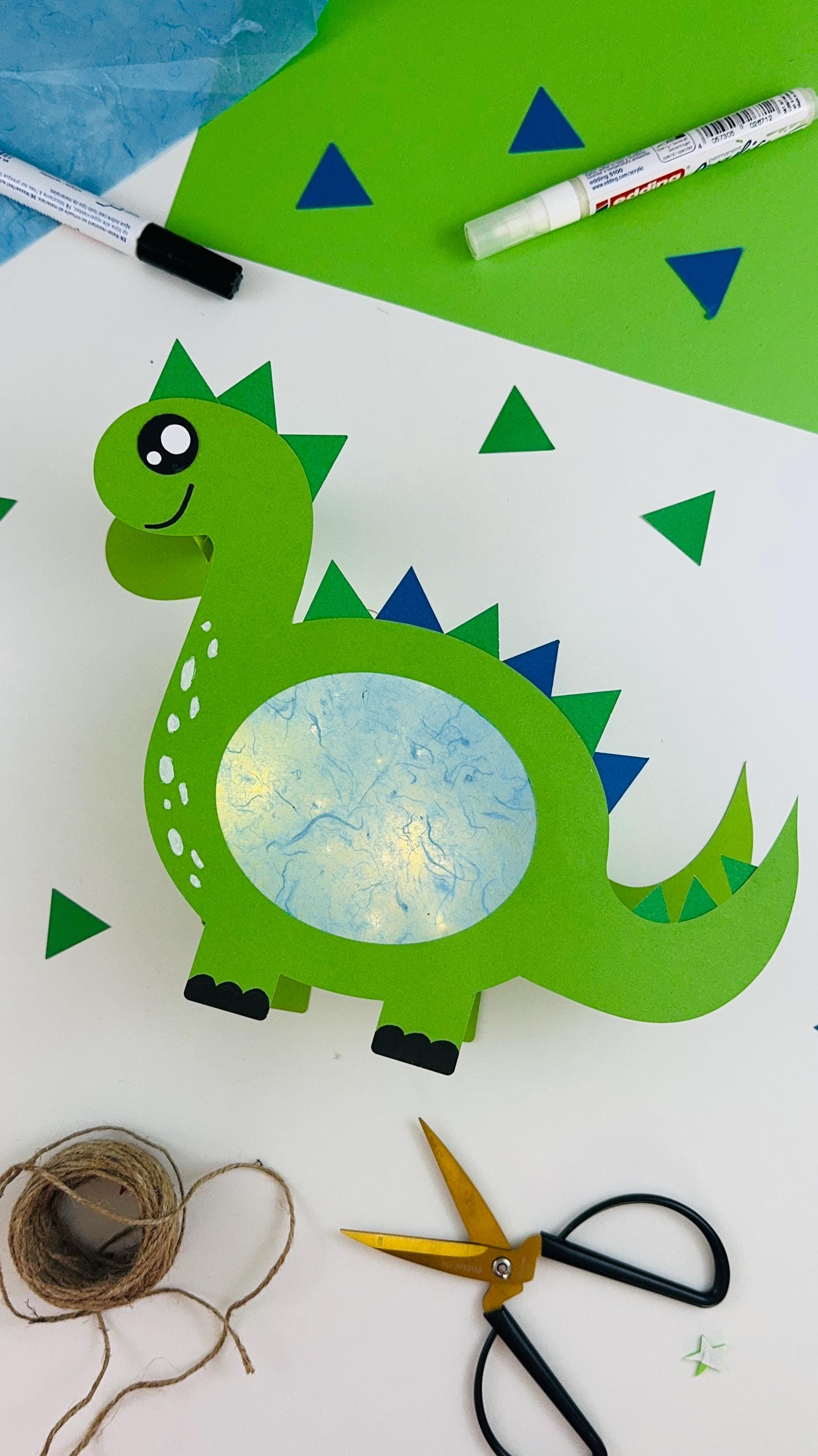 Dinosaur lantern craft template for the St. Martin's Day parade, including step-by-step instructions...