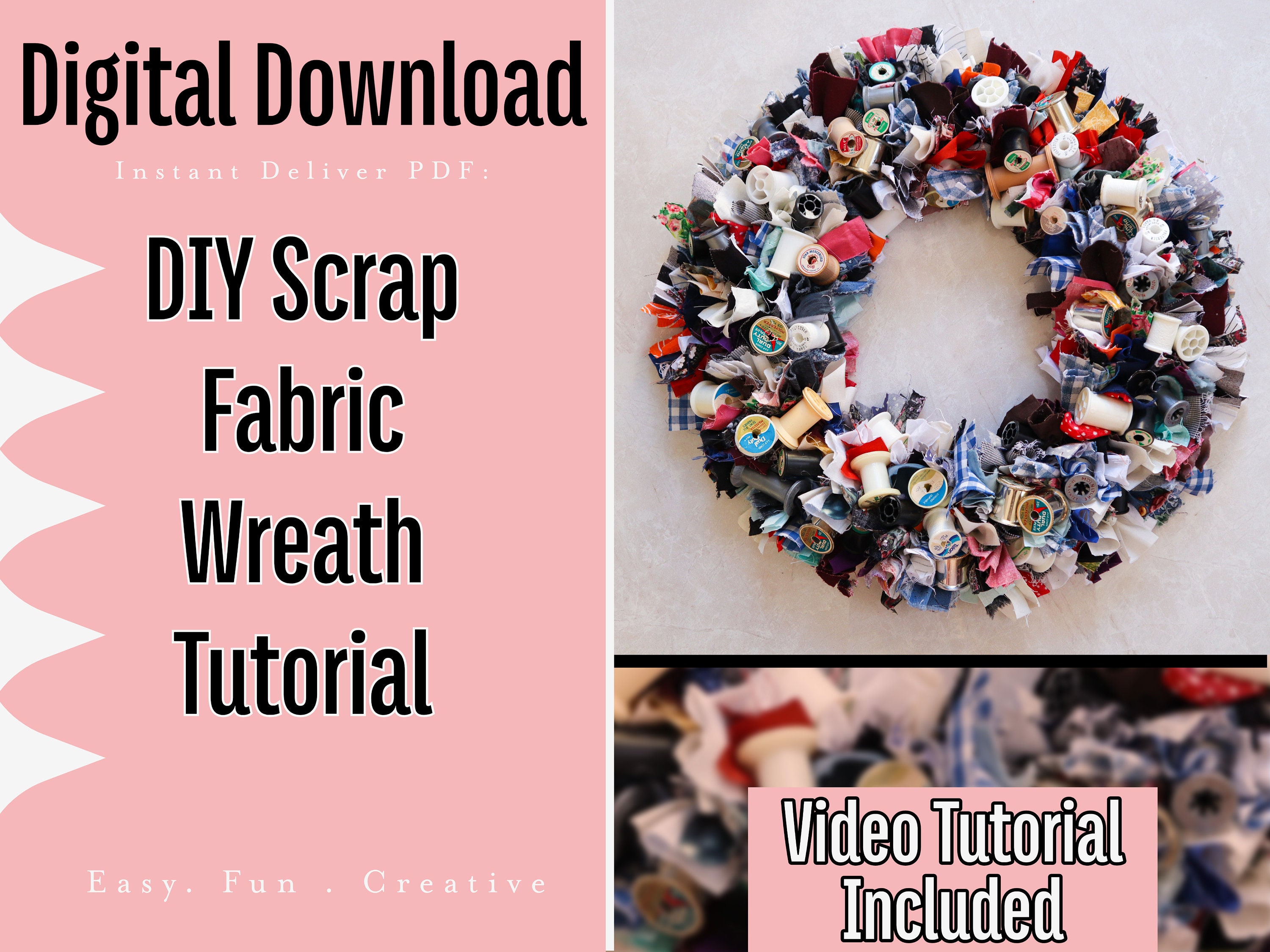 Scrap Fabric Wreath How To - Easy Craft Project PDF Tutorial | Recy...