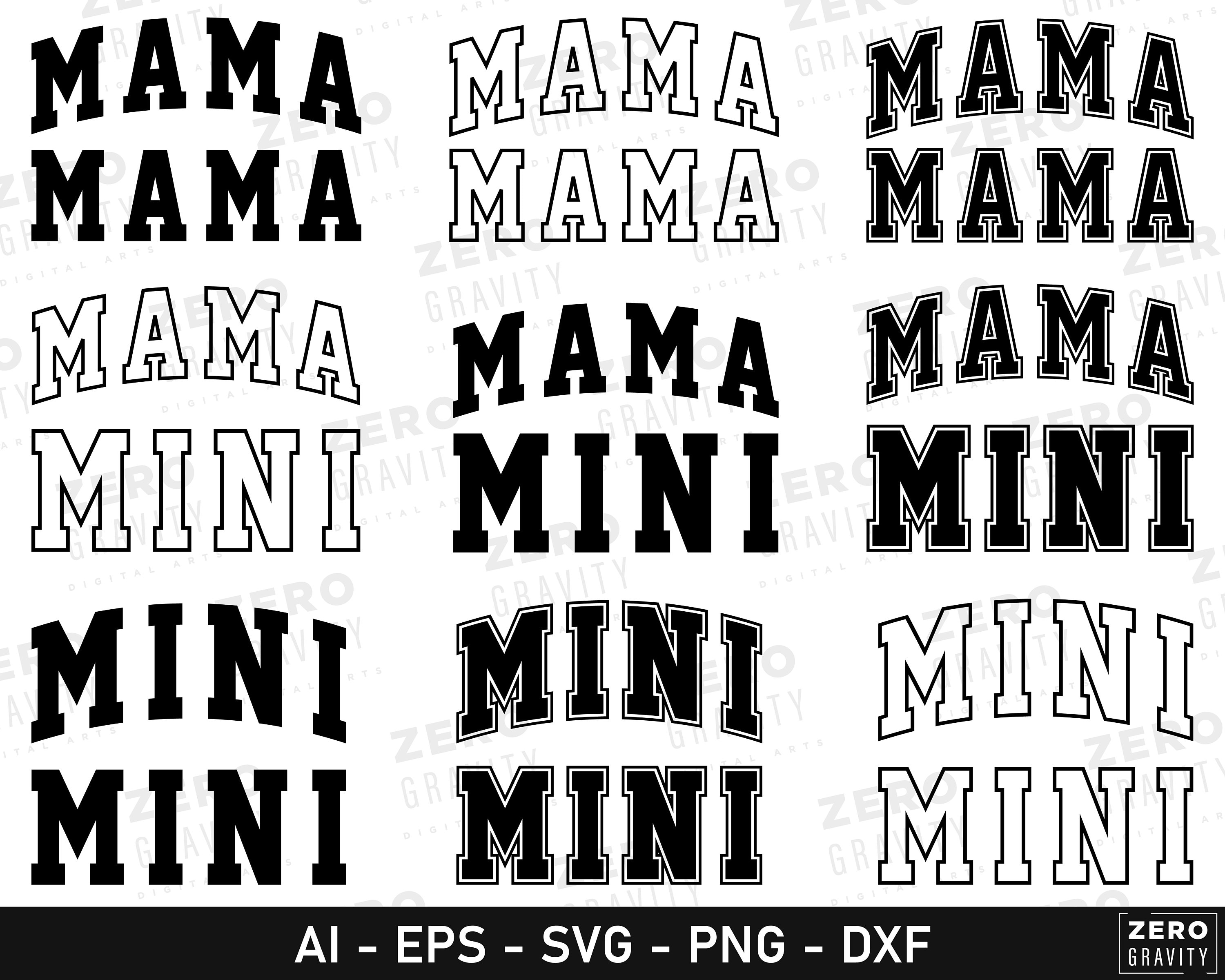 Mama and Mini Svg in Varsity Font, Digital Download Mama and Mini S...