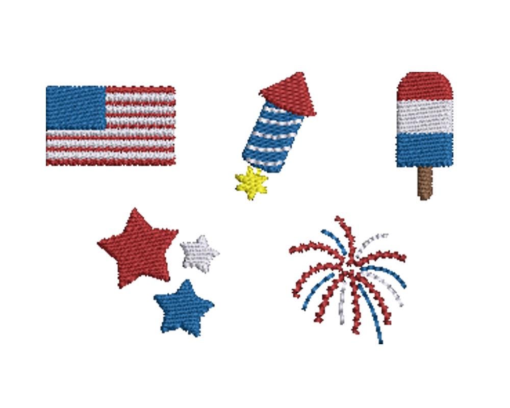 4th of July America Mini Embroidery Design Bundle, 5 Mini Designs, ...
