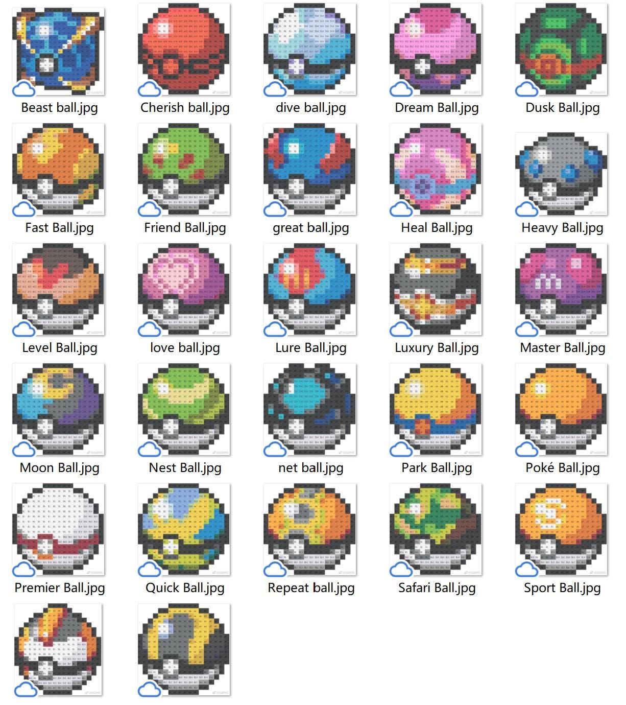 Pokemon Poke Ball 27 Designs Fuse Bead Patterns Bundle Digital Down...