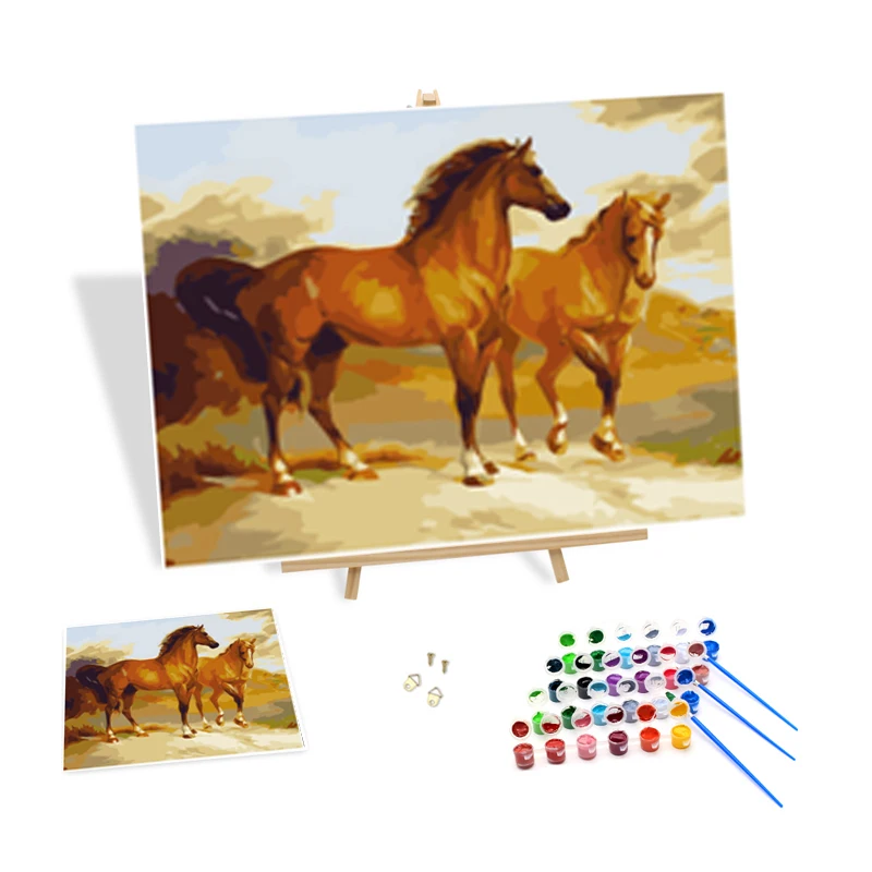 Digital Oil Painting Paint by Numbers the Horses Sky Acrylic Paint ...