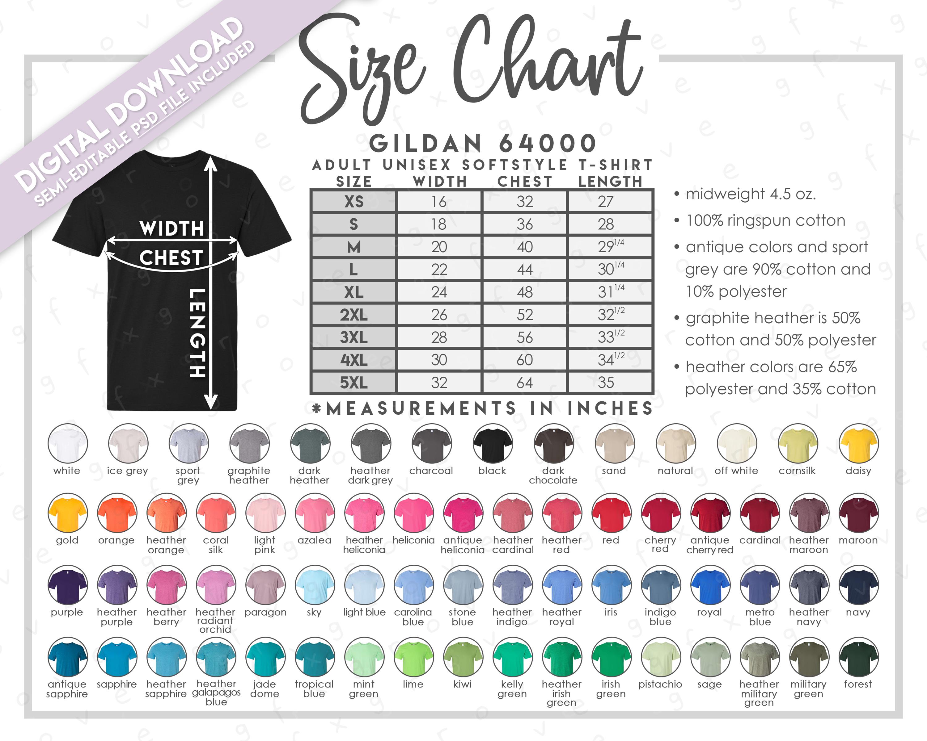 Semi-Editable Gildan 64000 Size Chart + Color Chart * Gildan Softst...