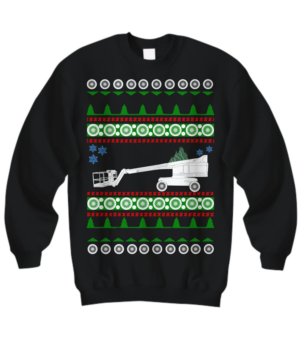 boom lift Ugly Christmas Sweater mobile holiday construction truck ...